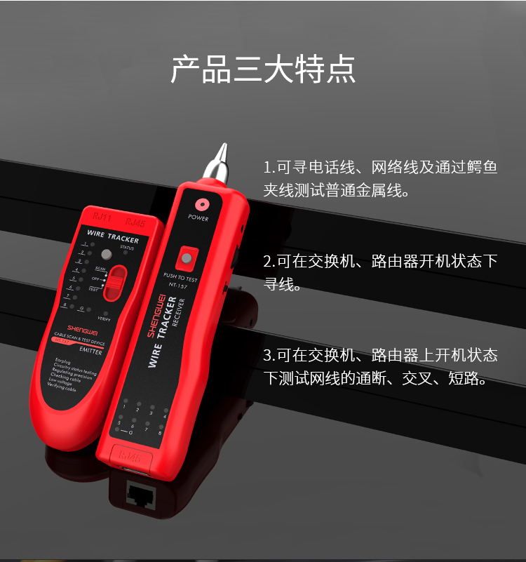 可測試線材:雙絞線、視頻線、電話線、普通金屬線等