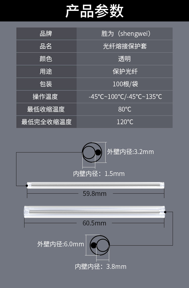 勝為光纖皮線熱縮管 3.8mm 熔接保護(hù)管裸纖尾纖管熱熔管100根/包 PS-1038