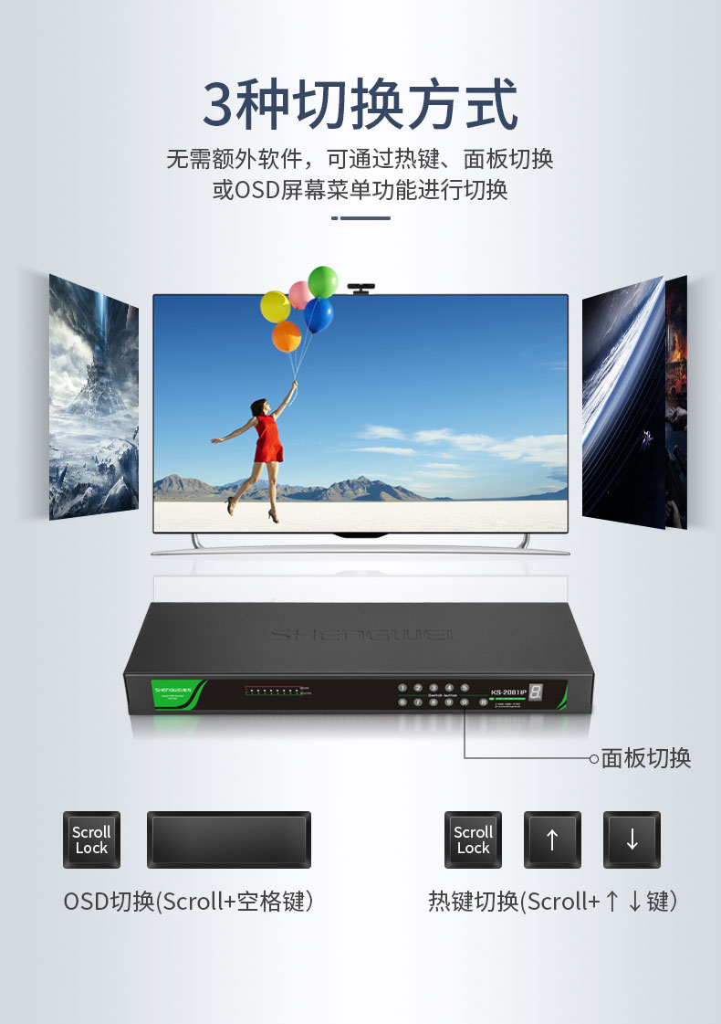 數(shù)字IPKVM切換器8口 網(wǎng)線視頻切屏器8進(jìn)1出 機(jī)架式網(wǎng)絡(luò)轉(zhuǎn)換器鍵鼠共享 KS-2081IP