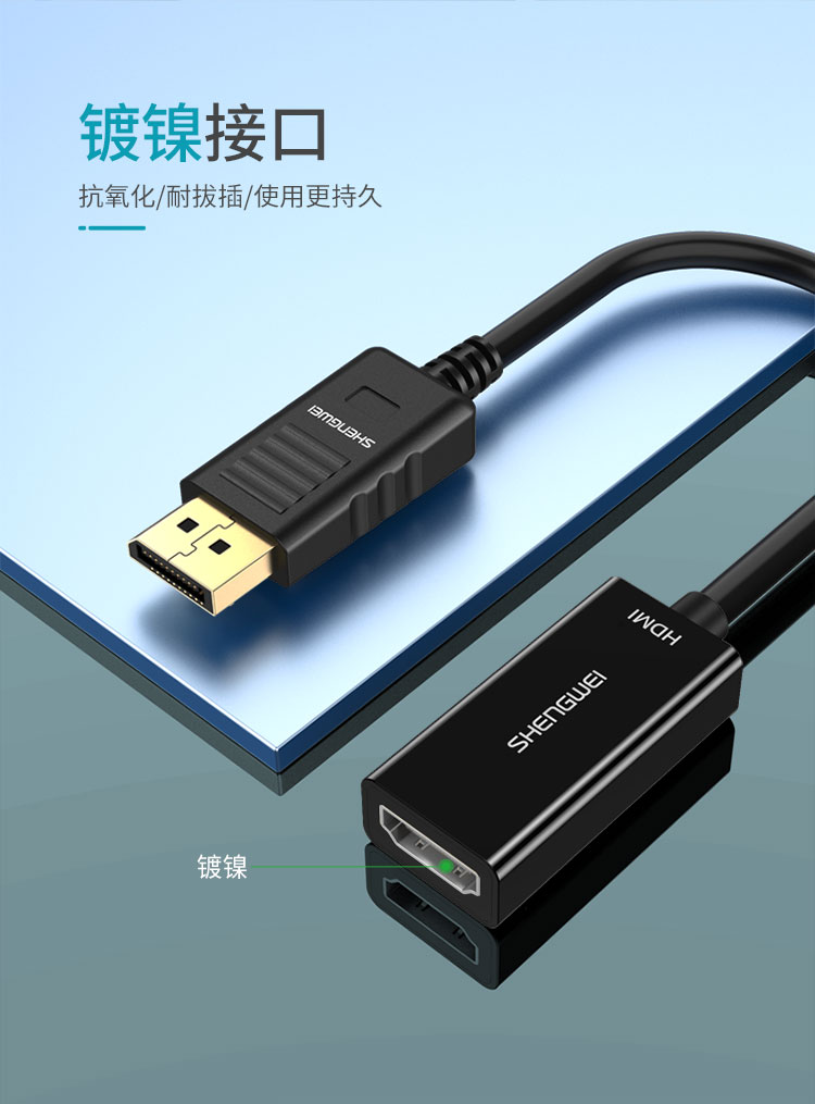 勝為DP轉(zhuǎn)HDMI轉(zhuǎn)換器 高清4K轉(zhuǎn)接頭 DisplayPort轉(zhuǎn)hdmi公對公 DP公轉(zhuǎn)HDMI母-1080P 0.2米 MN-8080