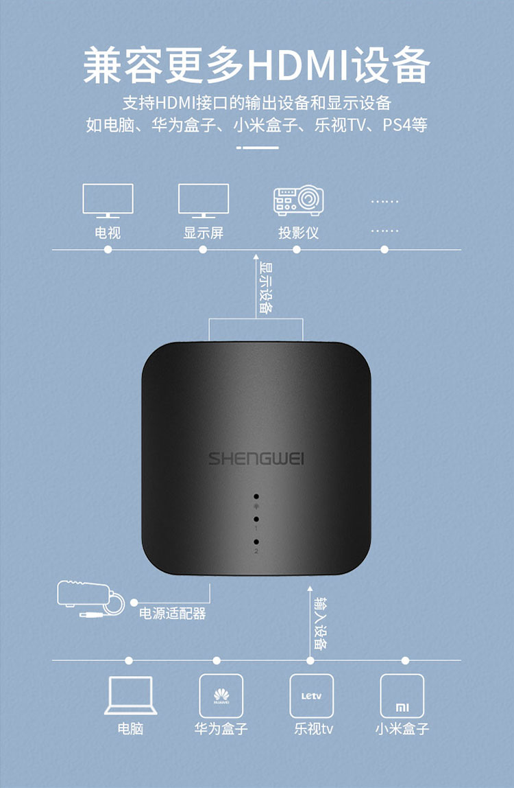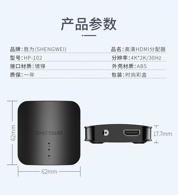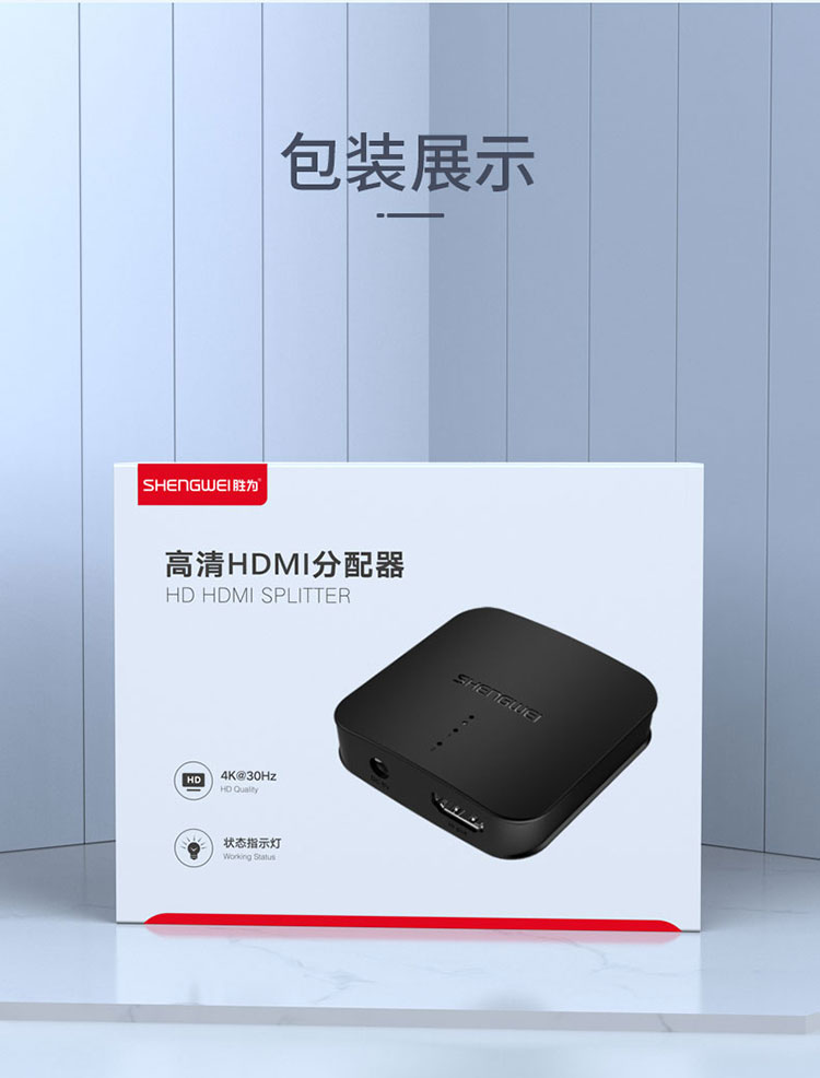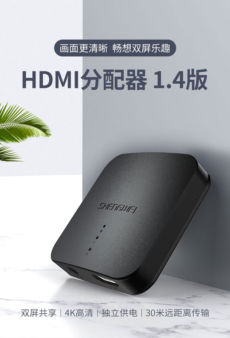 HDMI一分二分配器 1進2出4K數(shù)字高清視頻分屏器1.4版 勝為HP-102