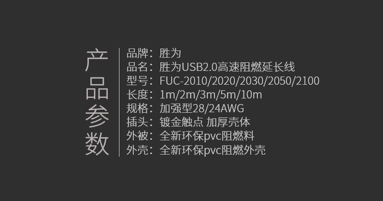 勝為 USB2.0延長線公對母 數(shù)據(jù)連接線工程級阻燃 FUC-2010