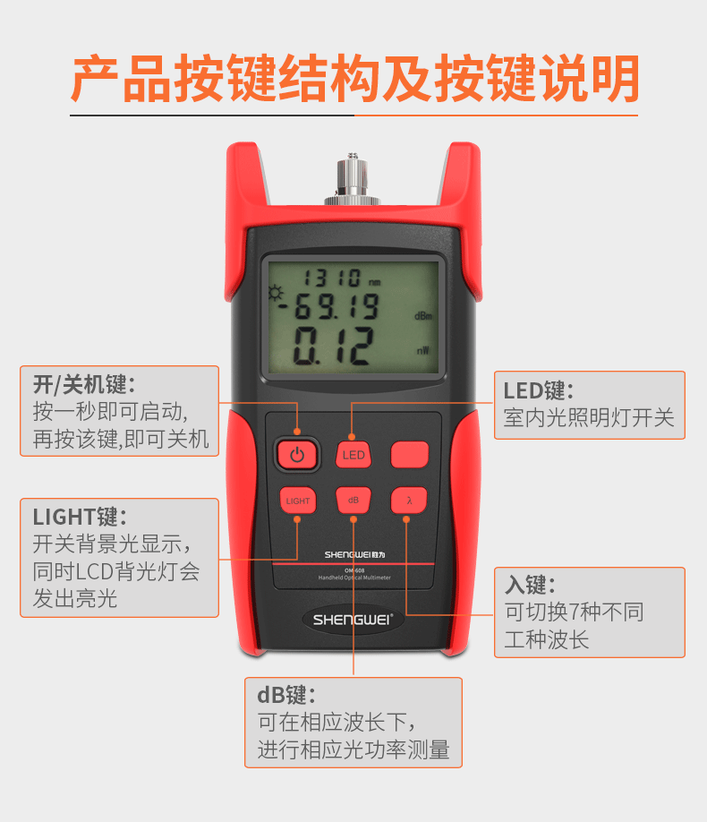 勝為光功率計光纖測試儀收光器 光纖尾纖線路光衰減檢測儀網(wǎng)絡(luò)測試器測線儀檢測器 OM-606