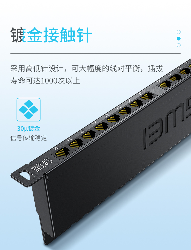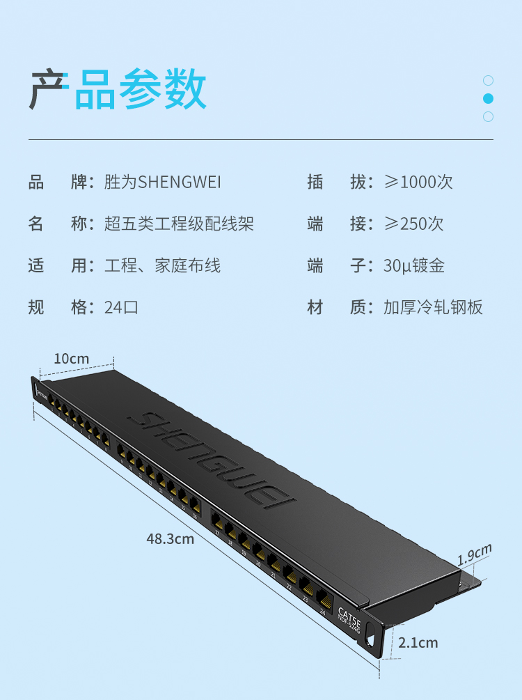 超五類配線架24口0.5U 工程級(jí)30U鍍金接口 勝為機(jī)架式網(wǎng)絡(luò)配線架 NDF-524G