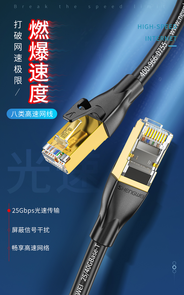 勝為八類萬兆網(wǎng)線CAT8網(wǎng)線電競級高速網(wǎng)絡(luò)跳線 黑色1米 LC-1301G