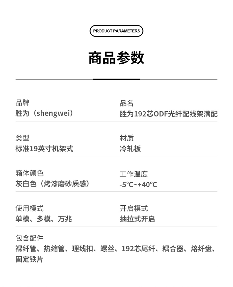 包含配件:裸纖管、熱縮管、理線扣、螺絲、192芯尾纖、耦合器、熔纖盤(pán)、固定鐵片