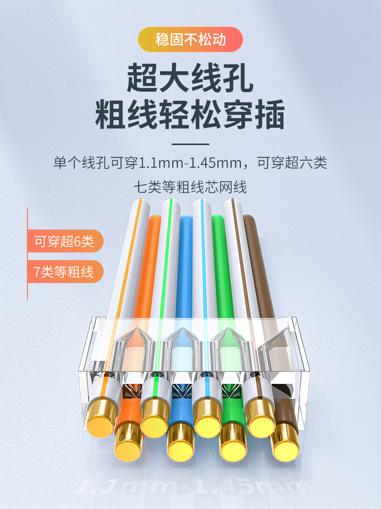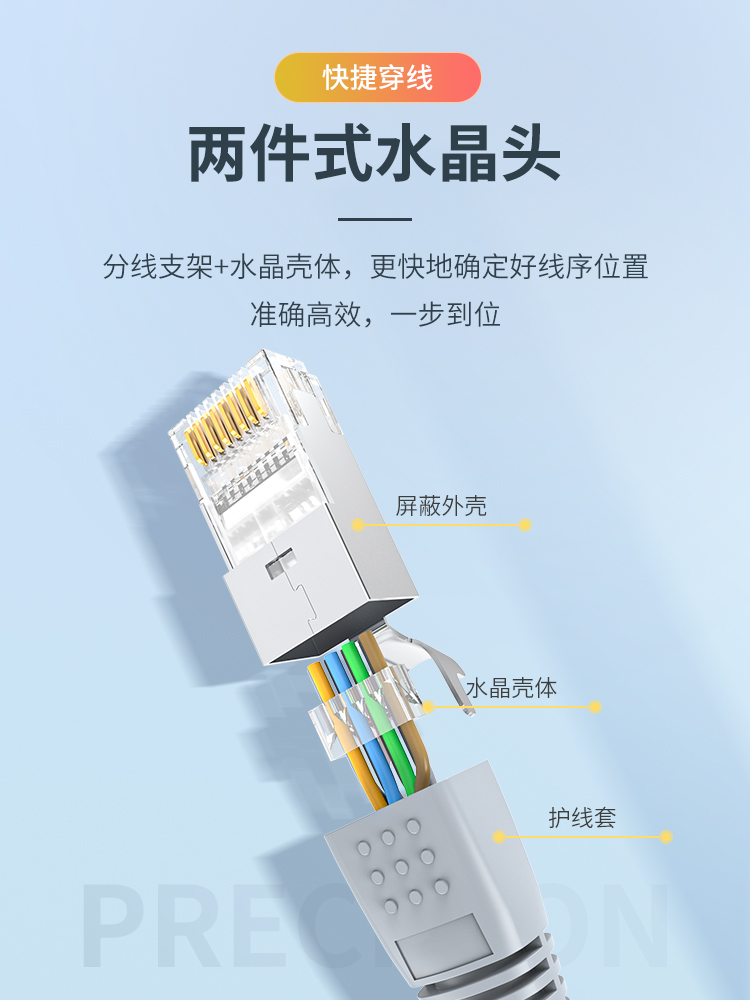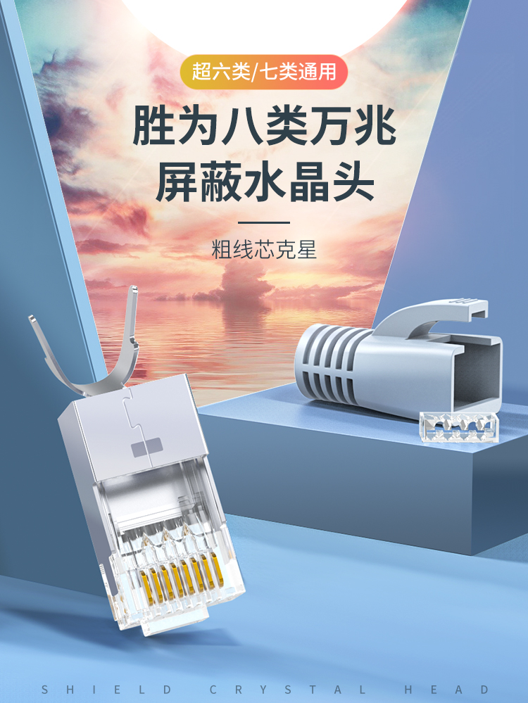 八類屏蔽水晶頭 2個裝 勝為萬兆兩件式純銅RJ45超六類七類50U鍍金接頭 帶燕尾夾WRC75002