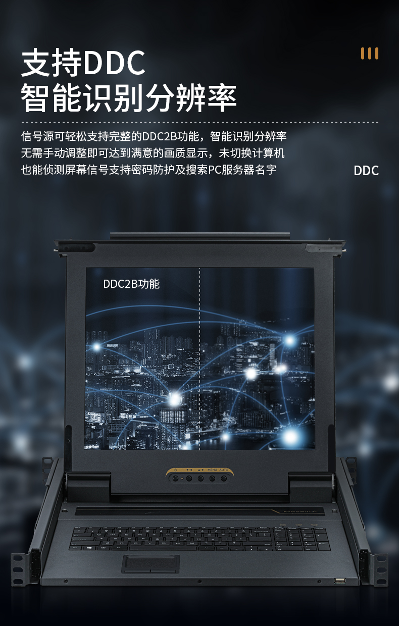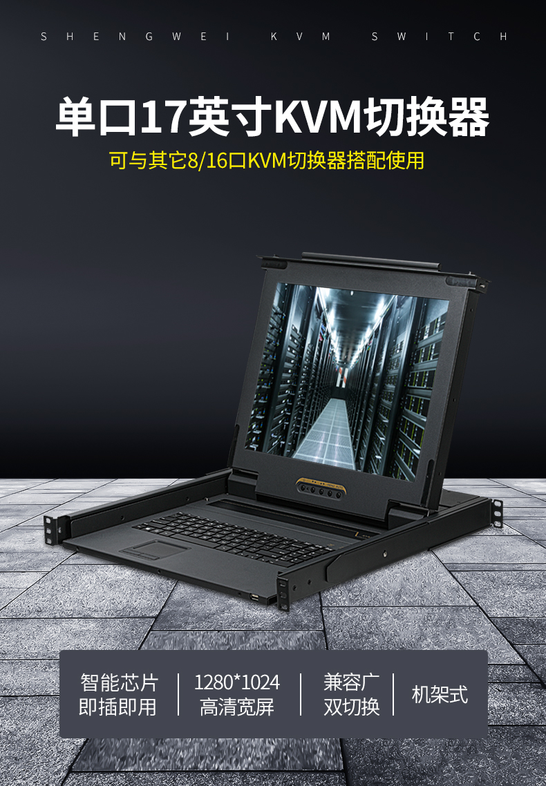 17英寸KVM切換器單口 數(shù)字LCD顯示器配VGA線 勝為單口機(jī)架式電腦轉(zhuǎn)換器KS-2701L