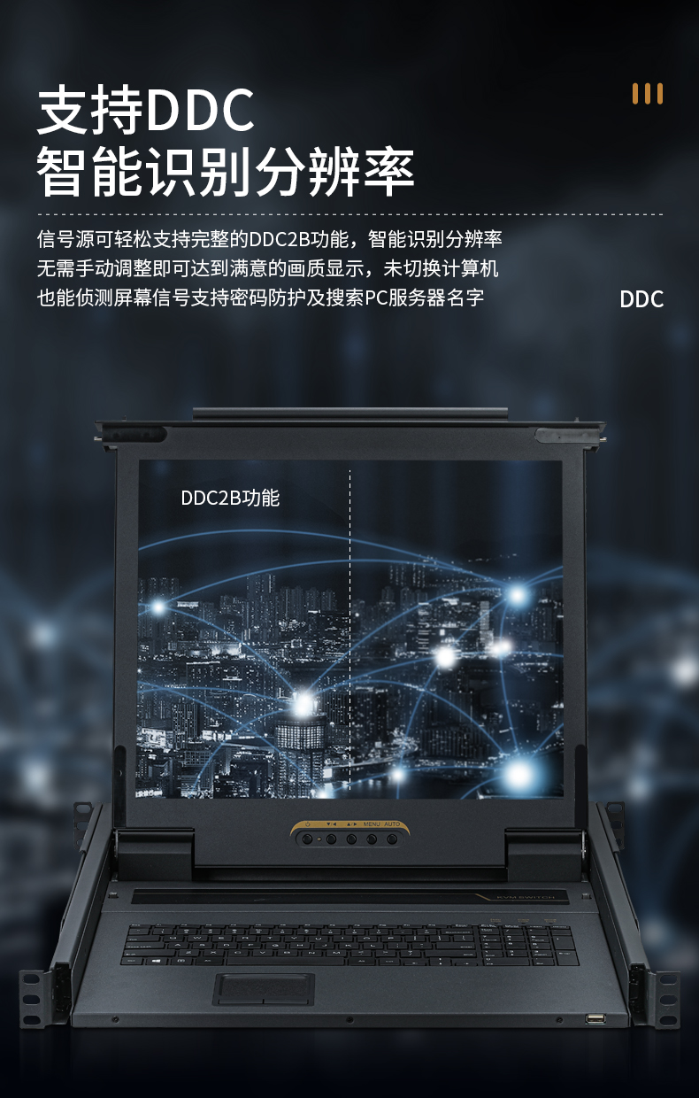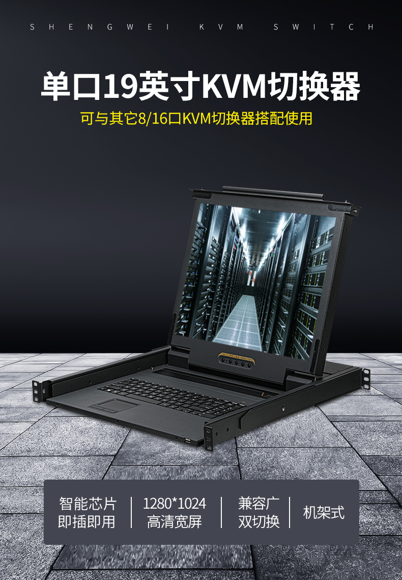 數(shù)字KVM切換器單口 19英寸LCD顯示器配VGA線 勝為單口機(jī)架式電腦轉(zhuǎn)換器 KS-2901L