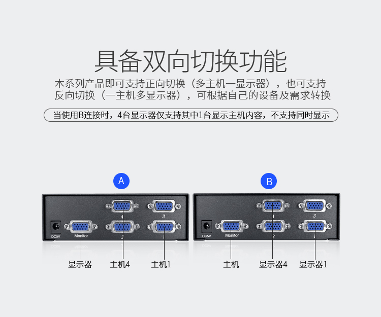 勝為vga雙向切換器四進(jìn)一出 電腦屏幕顯示器音視頻轉(zhuǎn)換器 遙控切換配電源線 VS-3041