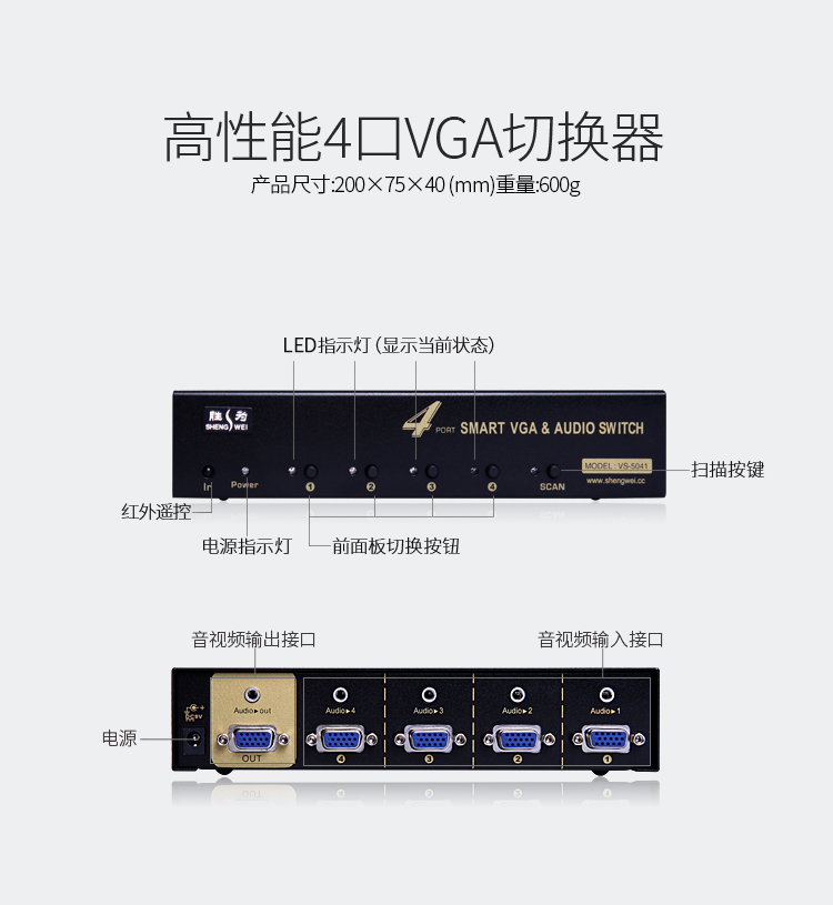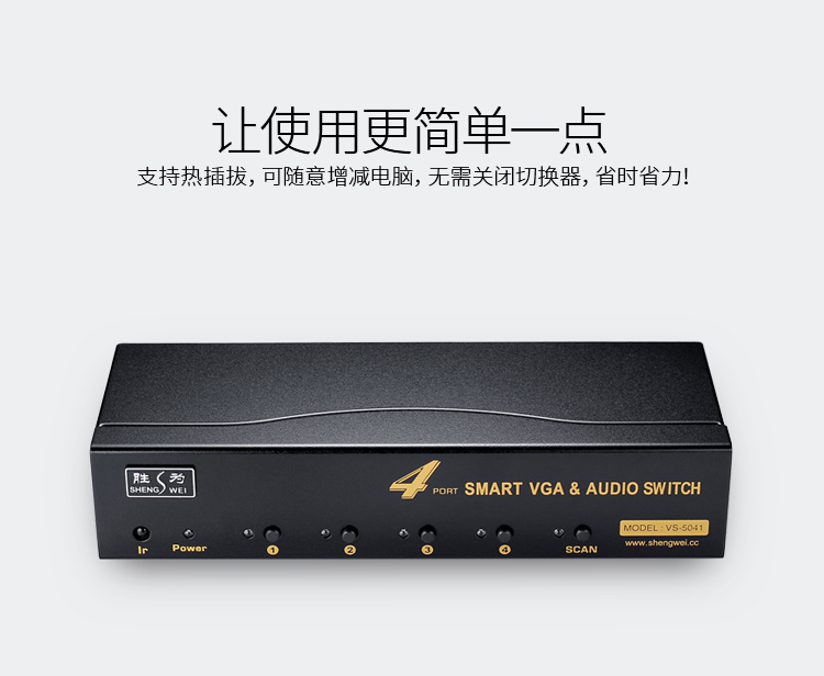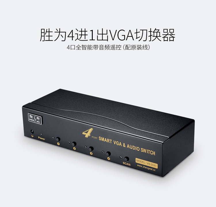 勝為vga切換器四進(jìn)一出 電腦屏幕顯示器音視頻轉(zhuǎn)換器 遙控切換配原裝線 VS-5041