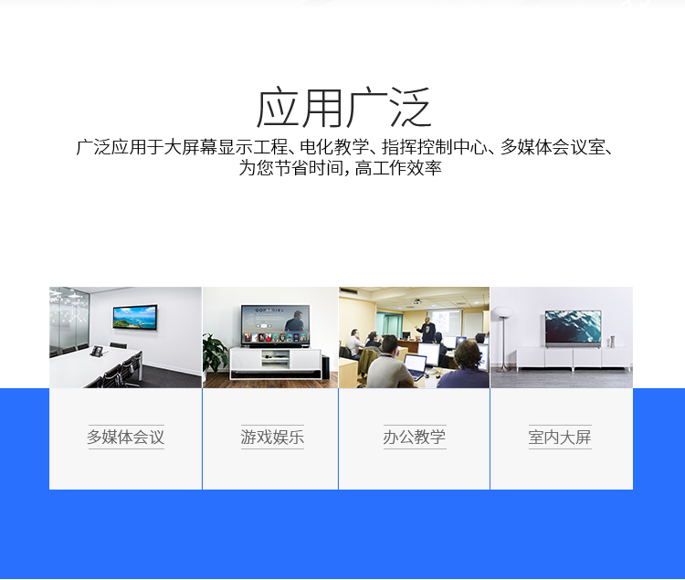 應(yīng)用:辦公,機(jī)房,演播室,會(huì)議監(jiān)控,音視頻管理等
