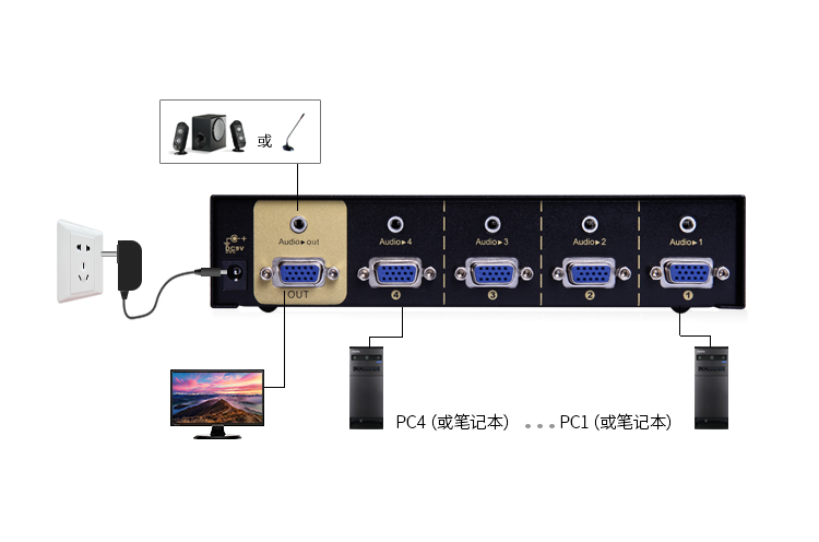 品名:勝為(shengwei)高品質(zhì)4口VGA音視頻切換器
