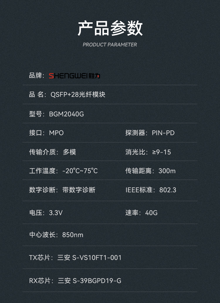 QSFP+光模塊萬兆40G多模雙纖 (850nm,MPO)兼容華為/中興 BGM2040G