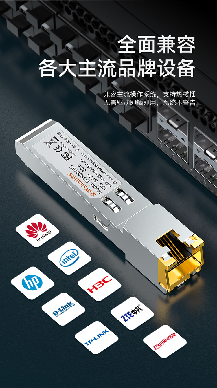 千兆SFP光轉(zhuǎn)電模塊 兼容華三 電口模塊RJ45 光口轉(zhuǎn)電口 100m 廣泛兼容華三等 BGR1125G