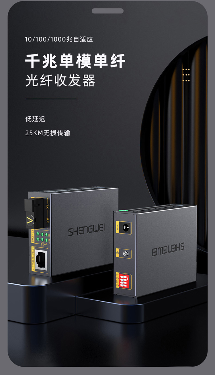 千兆單模單纖 一對裝 25KM 勝為SC口自適應(yīng)光纖收發(fā)器 FC-211AB