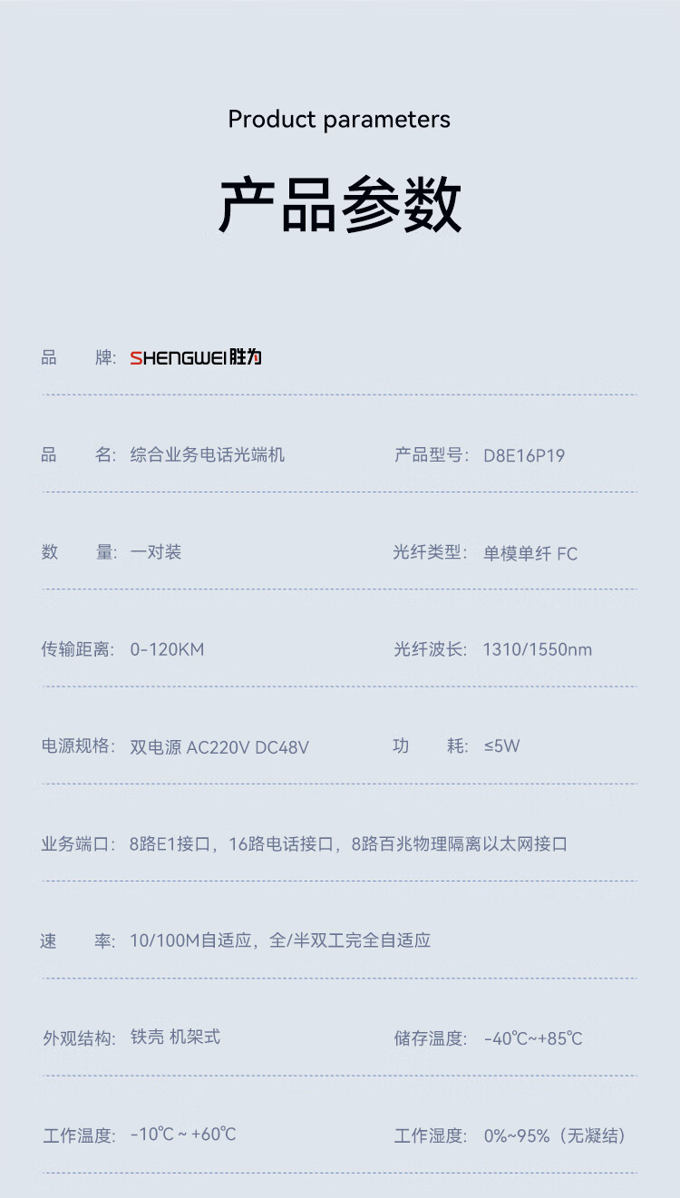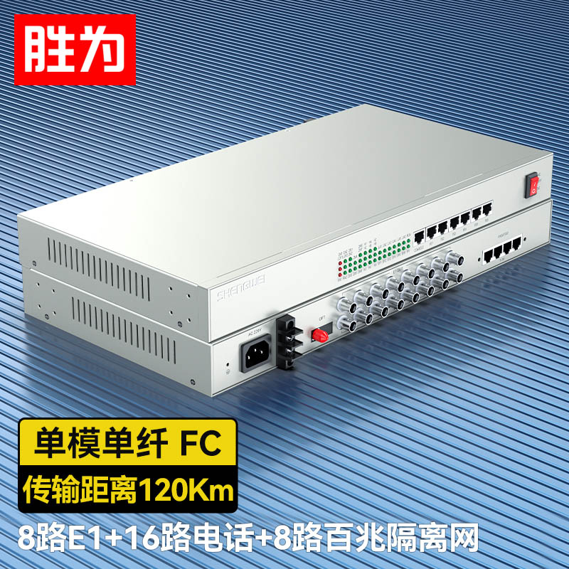 8路E1+16路電話+8路百兆隔離網(wǎng)絡(luò) 綜合業(yè)務(wù)電話光端機(jī) PCM語音光端機(jī) 120KM FC單纖桌面式 一對(duì) D8E16P19