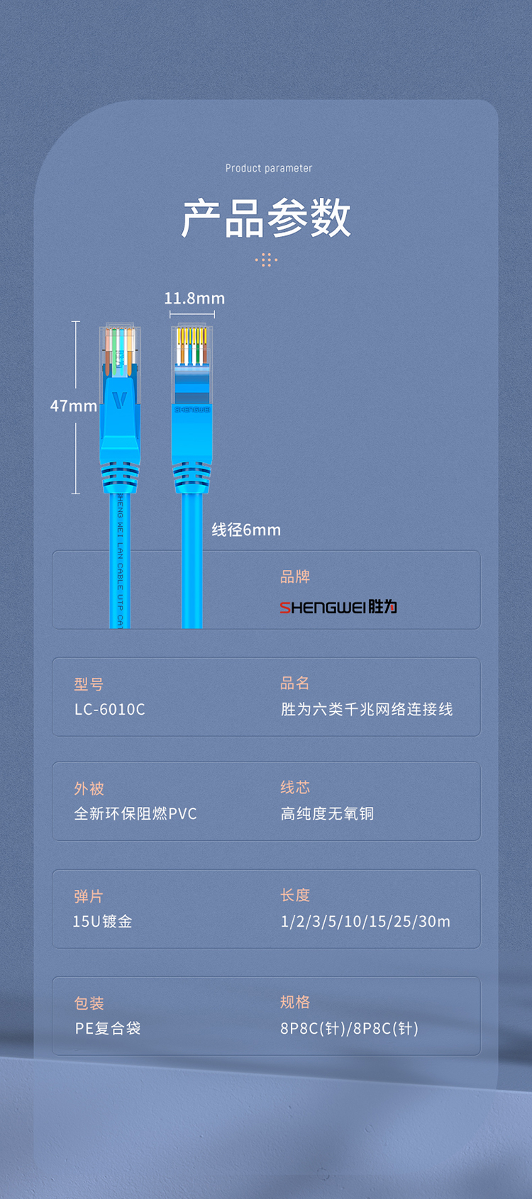 勝為六類千兆網(wǎng)線 cat6類純銅 3米 藍(lán)色 電腦/筆記本/寬帶成品網(wǎng)絡(luò)跳線 LC-6030C
