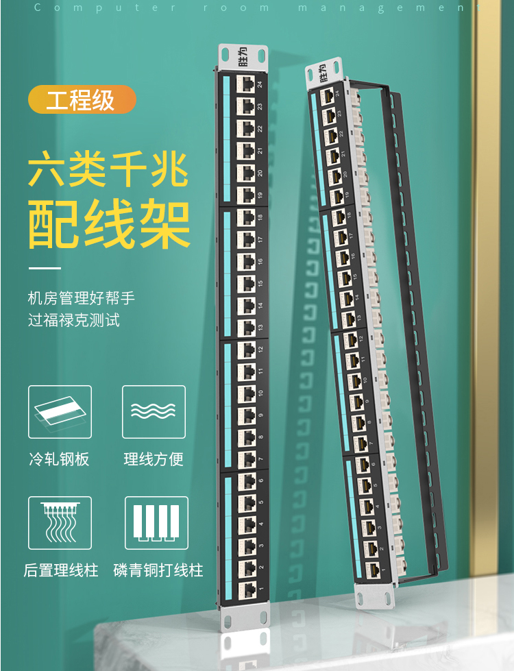 六類24口配線架 CAT6類工程級(jí)屏蔽模塊1U機(jī)架式機(jī)柜工程網(wǎng)絡(luò)跳線理線槽 WNDF624G