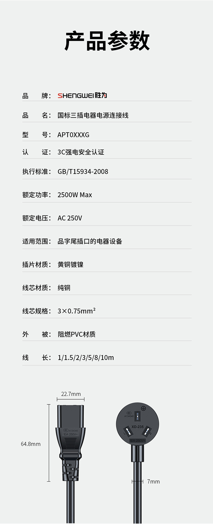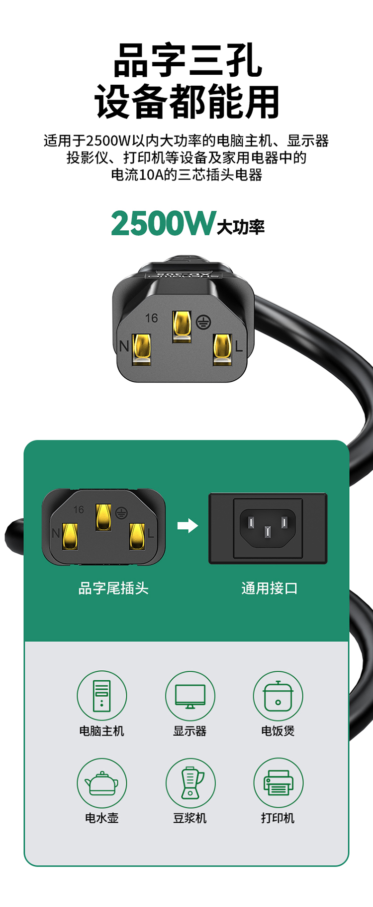 品名:國際三插電器電源連接線