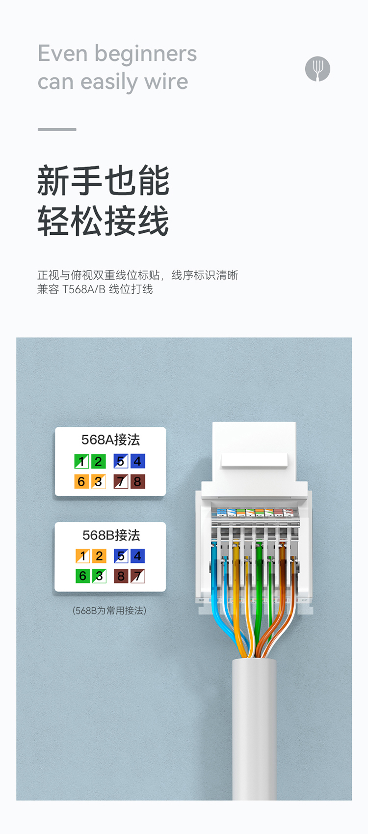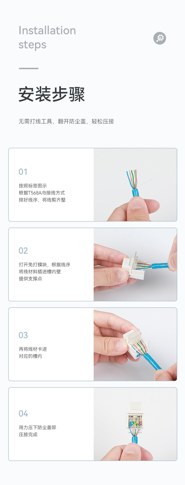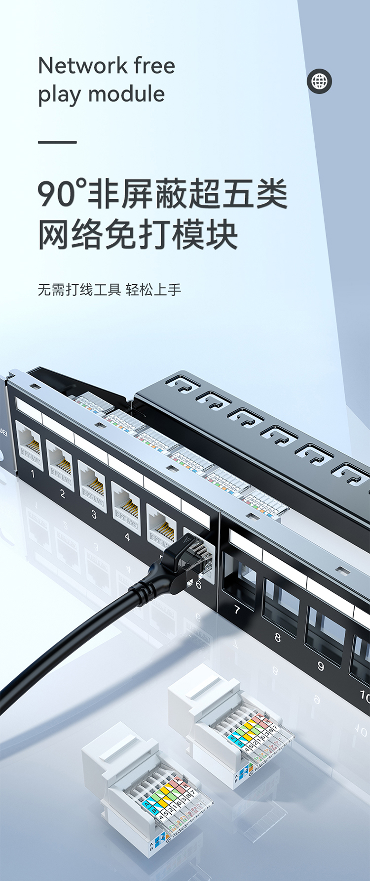 超五類網(wǎng)絡(luò)模塊 CAT5e網(wǎng)線面板連接器非屏蔽 RJ45水晶頭電腦插座連接頭直通頭 單個裝CMK5004H