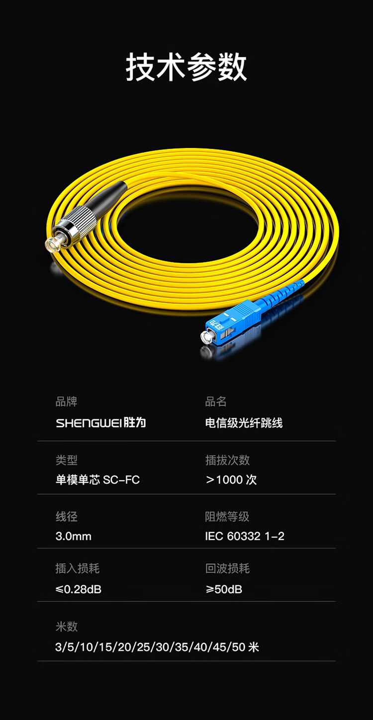 SC-FC單模單芯光纖跳線?勝為 FSC-102