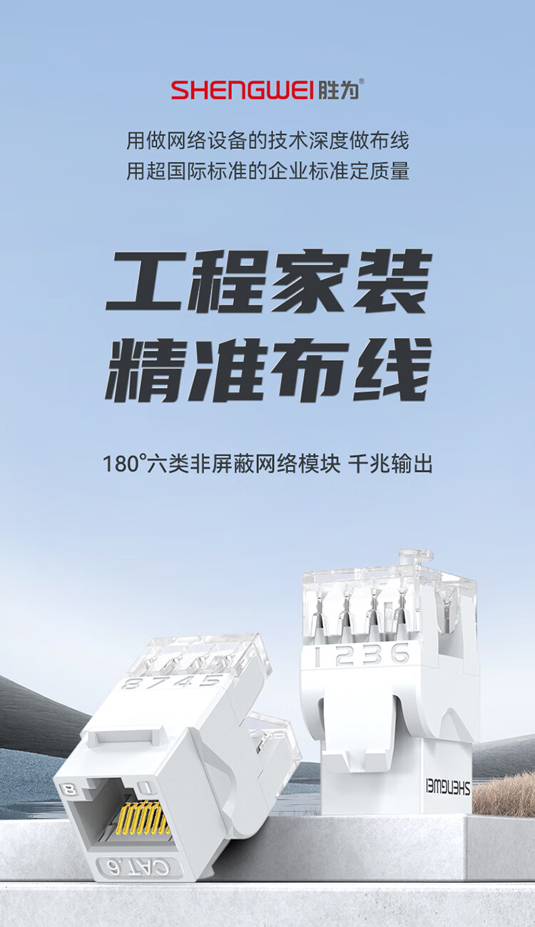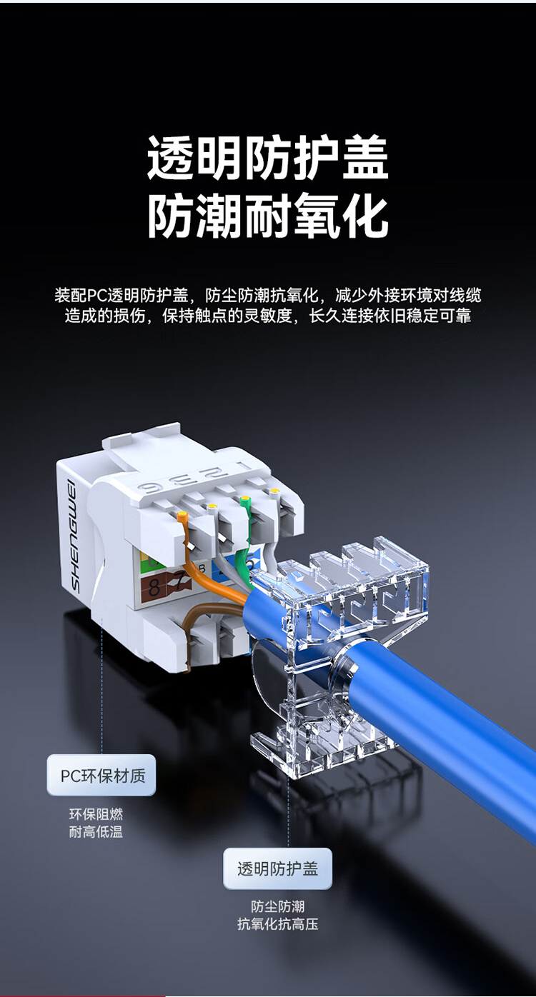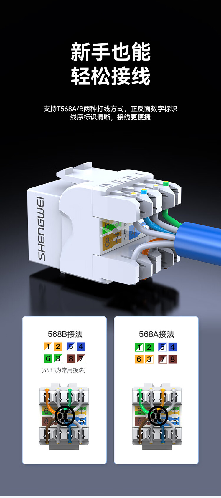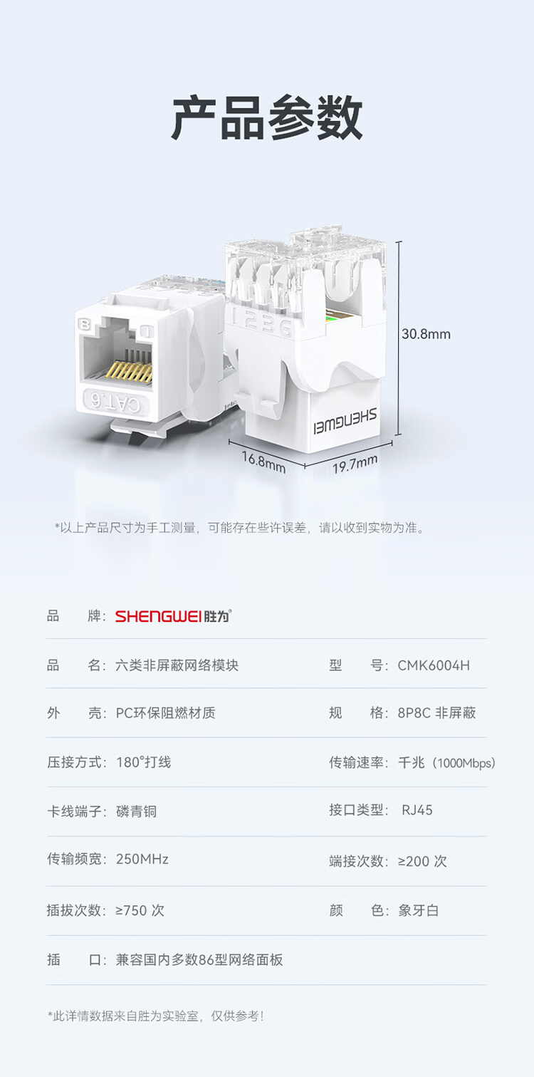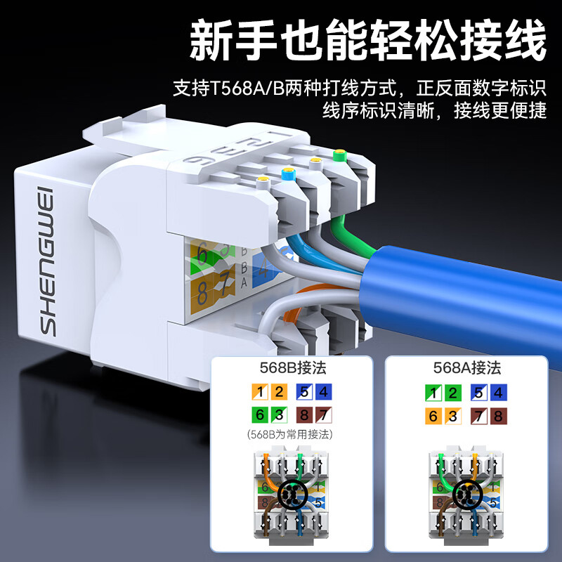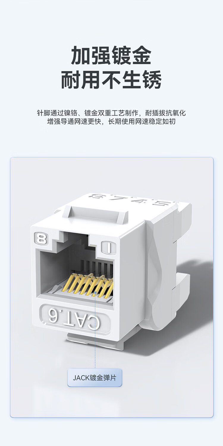 六類網(wǎng)絡(luò)模塊 勝為CAT6千兆網(wǎng)線面板連接器非屏蔽 RJ45水晶頭電腦插座連接頭直通頭 單個(gè)裝CMK6004H