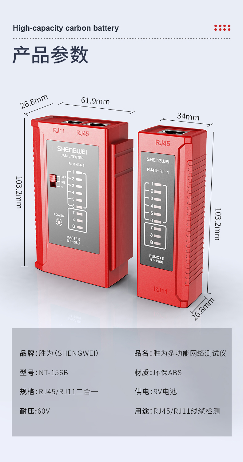 網(wǎng)絡(luò)測(cè)試儀 多功能測(cè)線儀 勝為電腦網(wǎng)絡(luò)水晶頭電話線工程家用 NT-156B