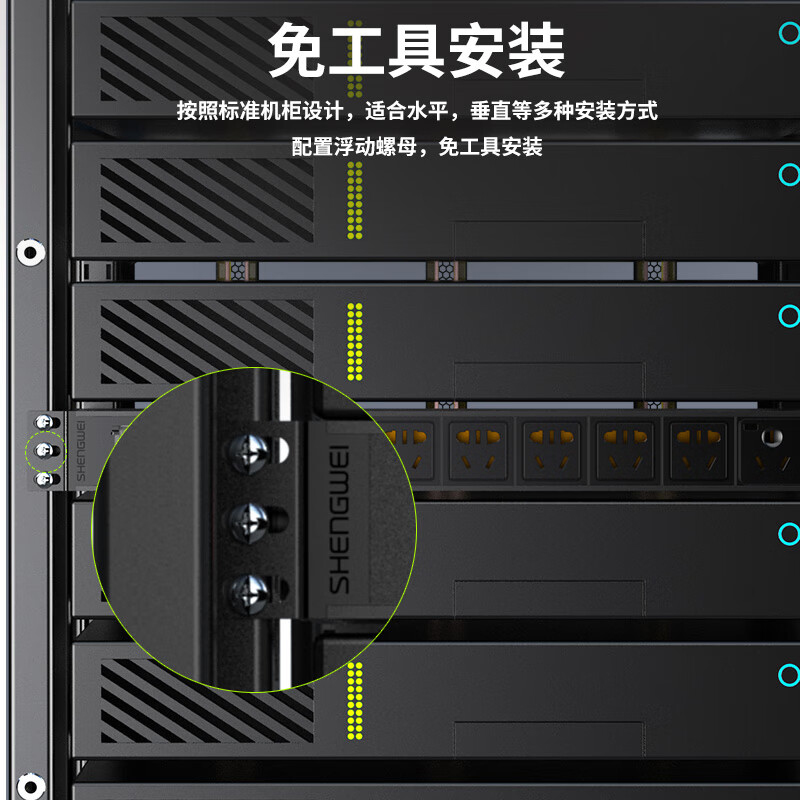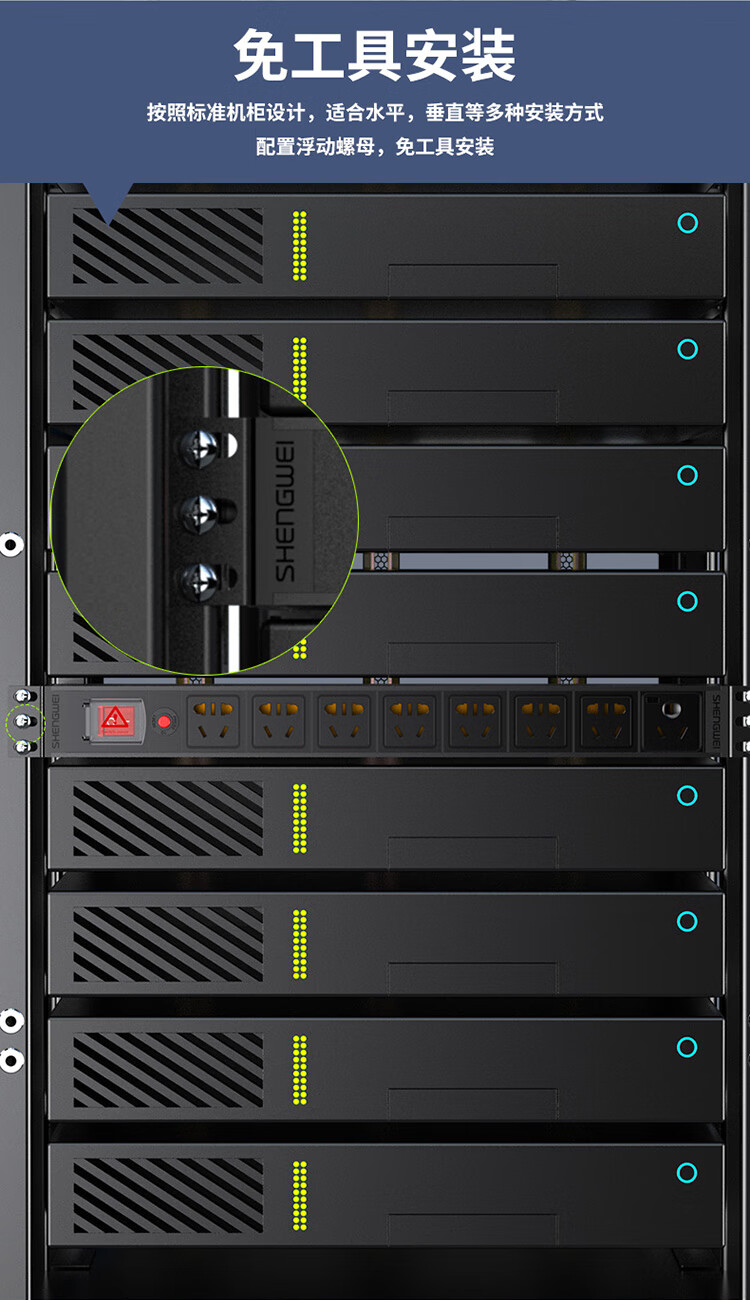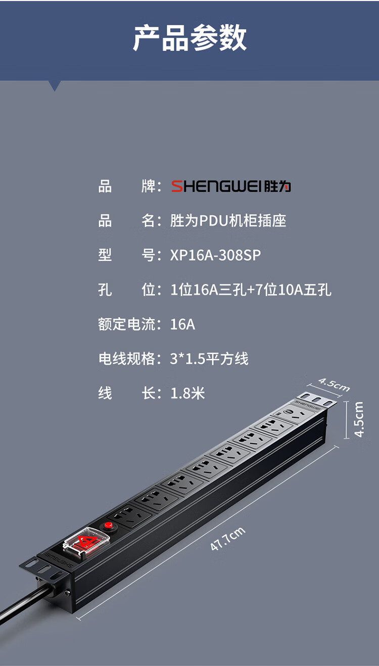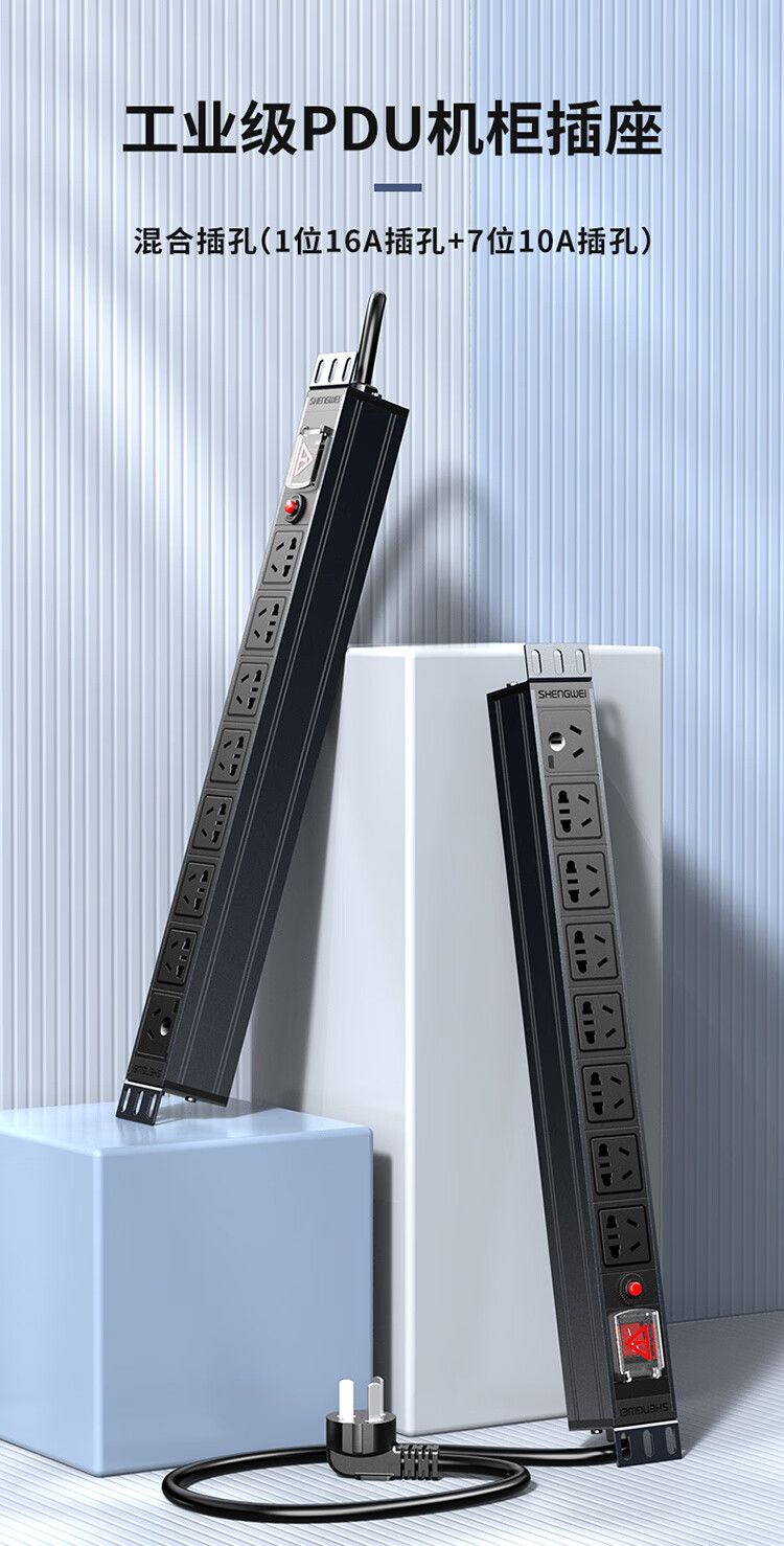 PDU機(jī)柜插座 8位16A總控過(guò)載保護(hù) 勝為大功率工程機(jī)房機(jī)柜專(zhuān)用多功能插座插排接線(xiàn)板 XP16A-308SP