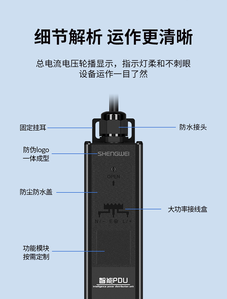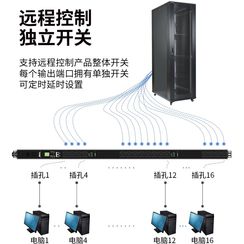 PDU機(jī)柜插座16位10a工業(yè)智能遠(yuǎn)程級控制監(jiān)測報(bào)警插排 勝為多功能液晶數(shù)顯電源插板CPD-102Z