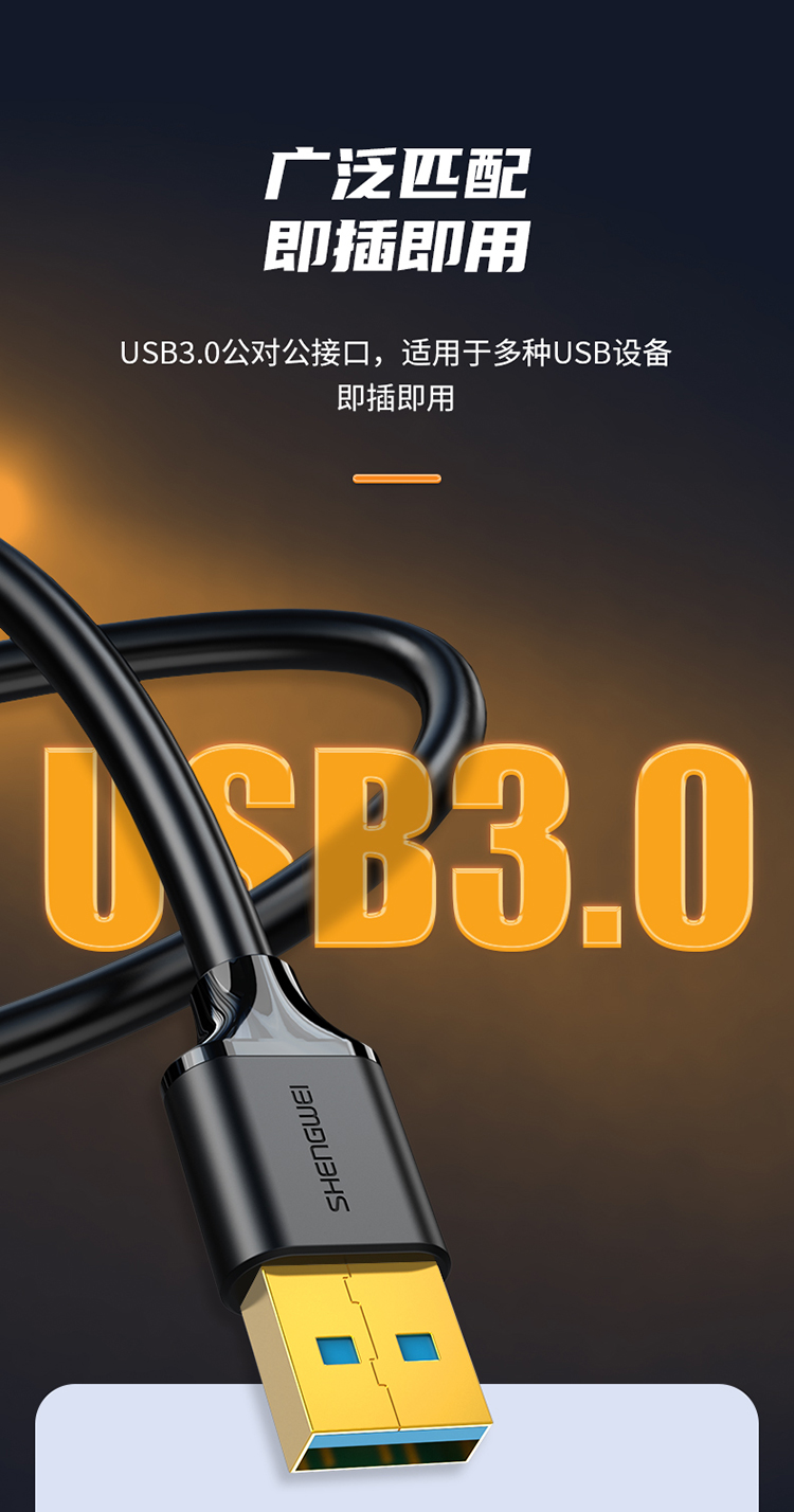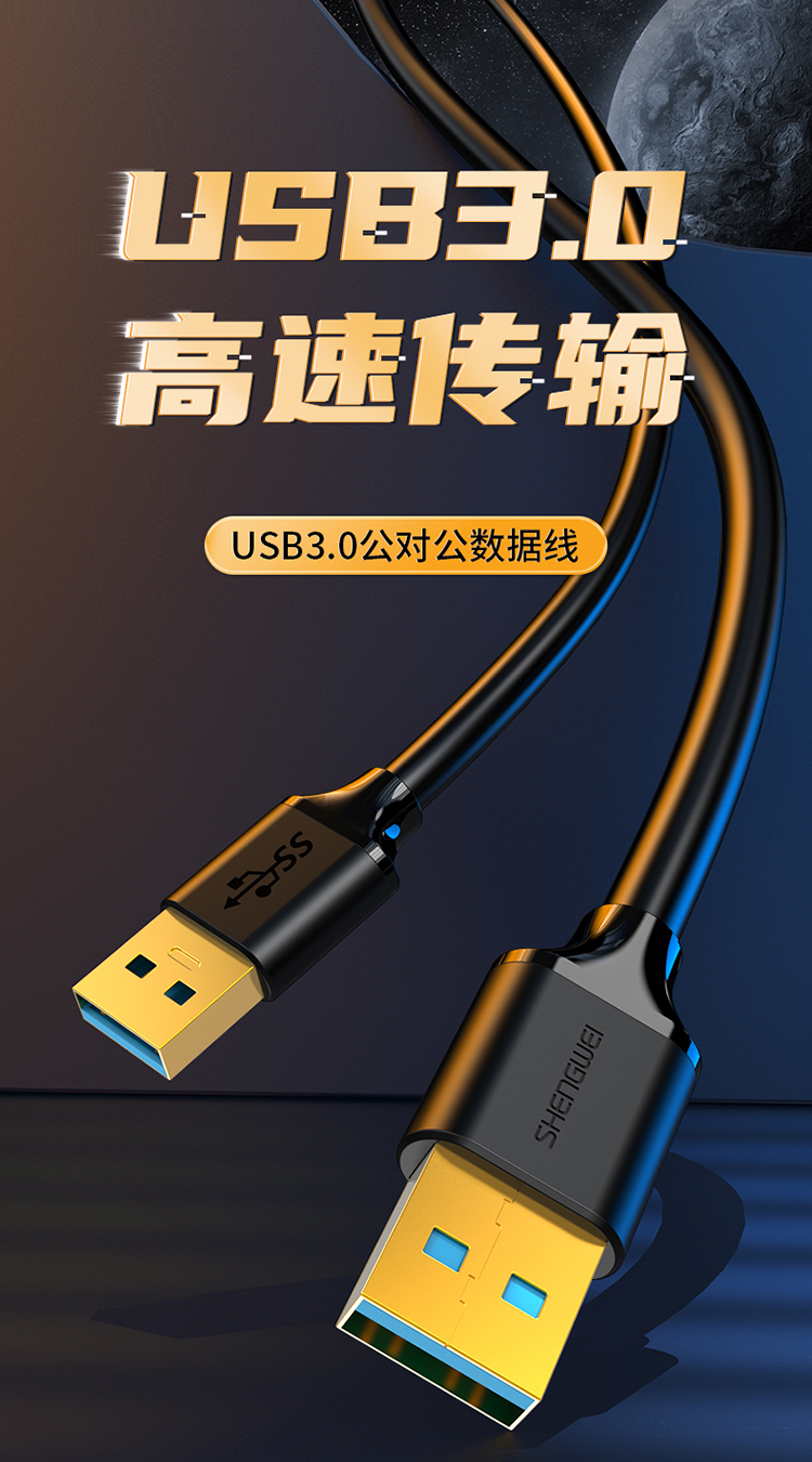 USB3.0數(shù)據(jù)公對公線 黑色1.5米 勝為雙頭移動硬盤盒延長連接線 UT-3015