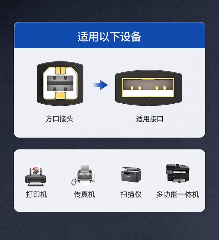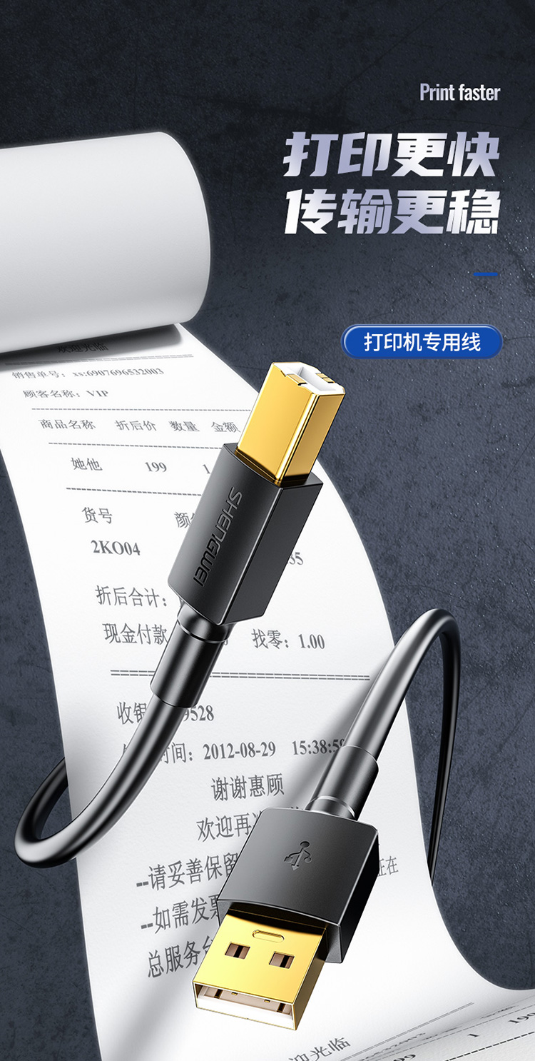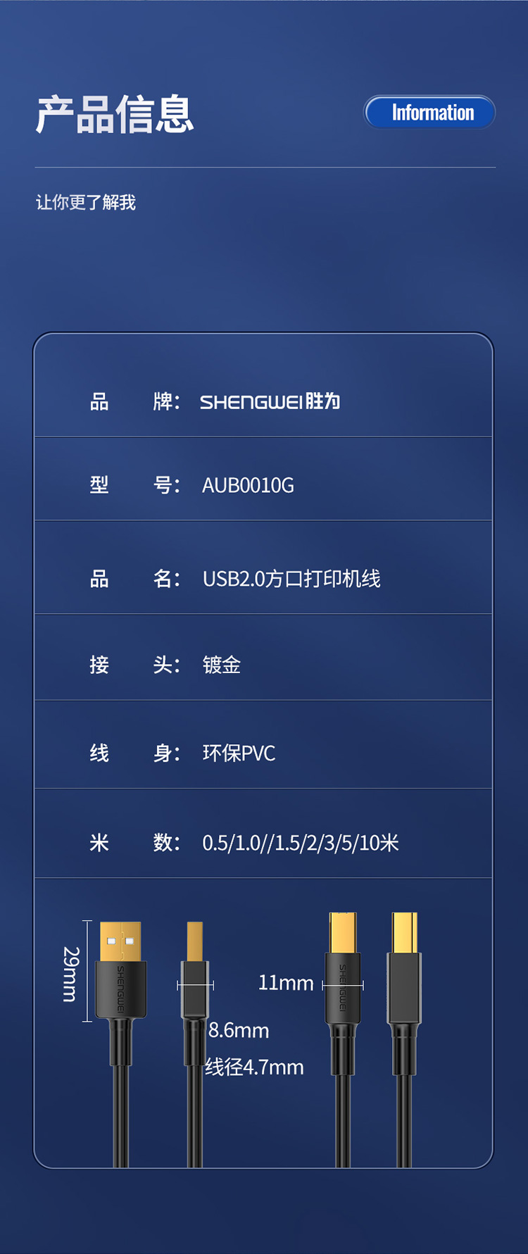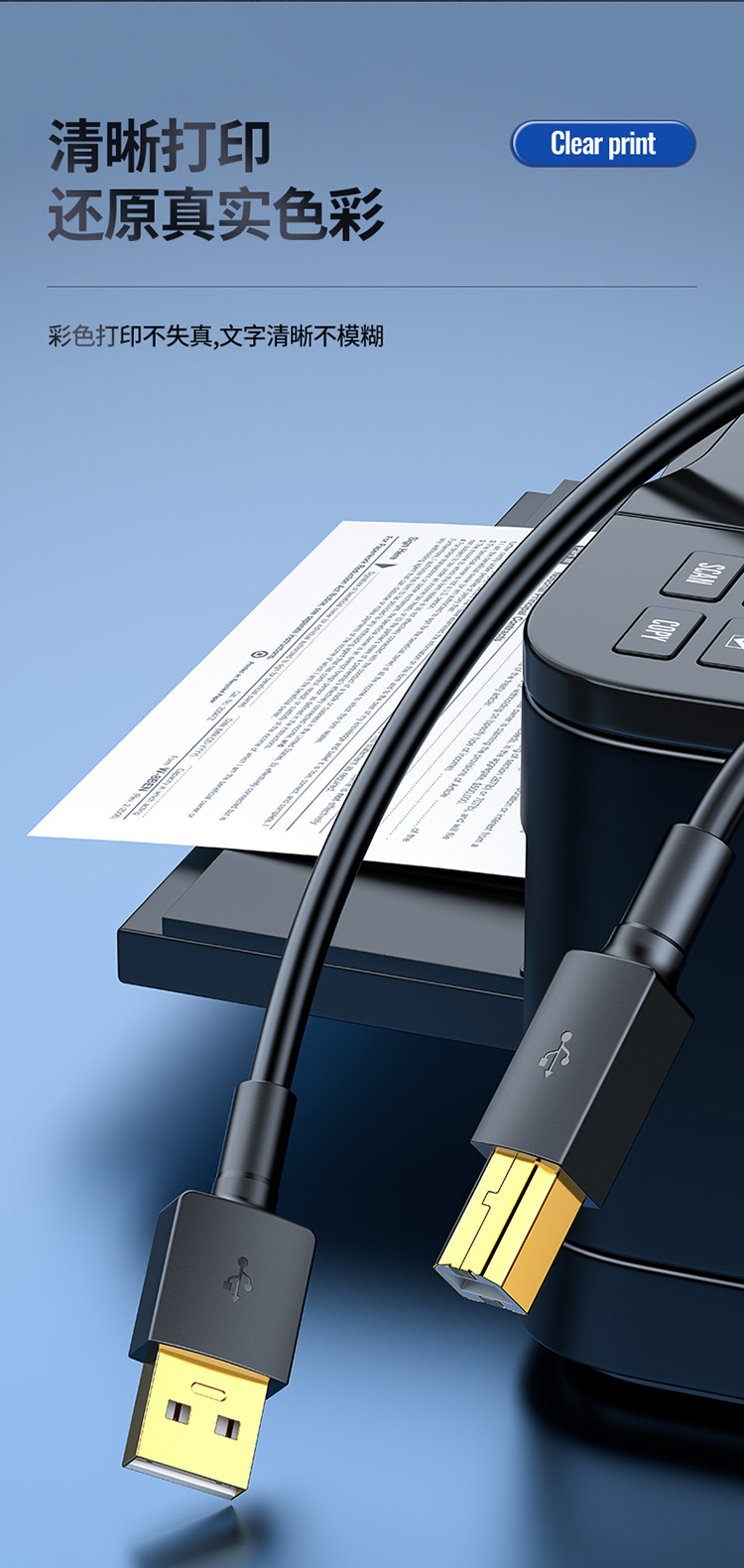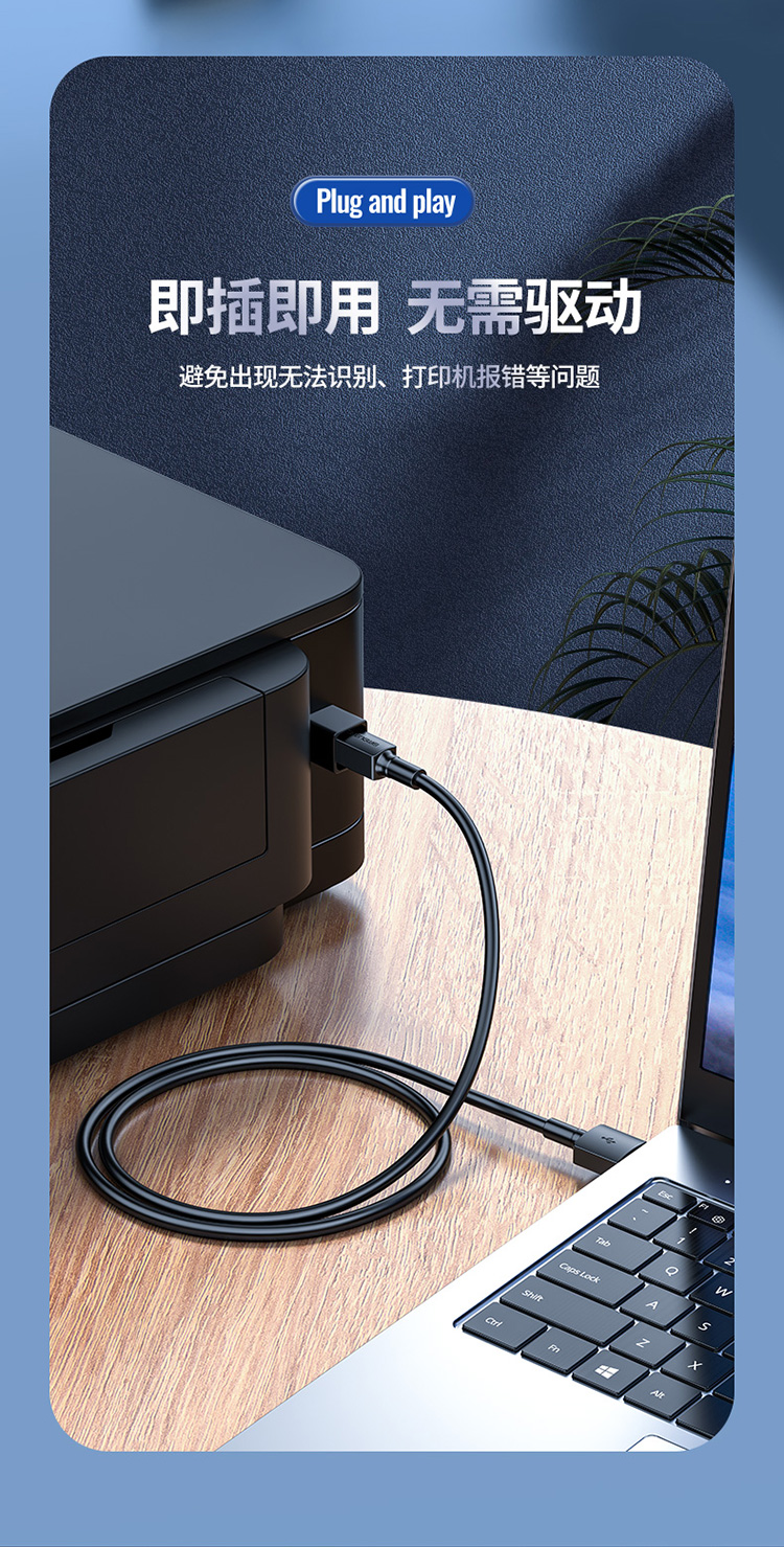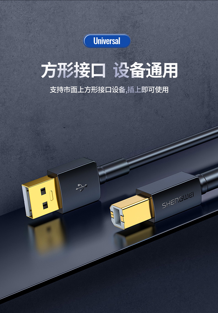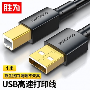 USB高速打印機(jī)線2.0版1米 激光/噴墨/標(biāo)簽機(jī)通用 支持電腦連接惠普愛普生佳能小米等設(shè)備 勝為 AUB0010G