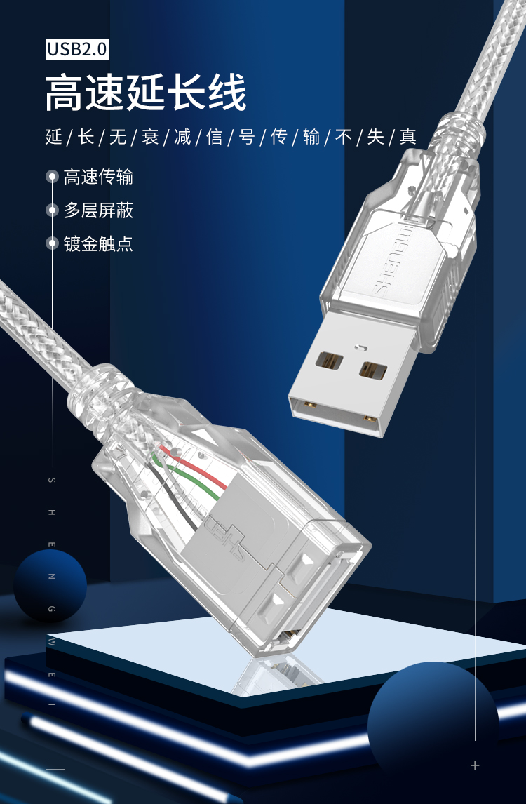 USB延長線公對母 usb2.0數(shù)據(jù)連接線 勝為高速電腦U盤鼠標(biāo)鍵盤加長線1.8米UC-2018