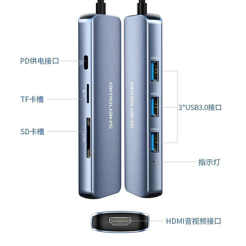Type-C擴(kuò)展塢七合一 適用蘋果MacBook華為電腦拓展塢轉(zhuǎn)HDMI線轉(zhuǎn)換器 勝為轉(zhuǎn)接頭筆記本投屏 ZHB7001J
