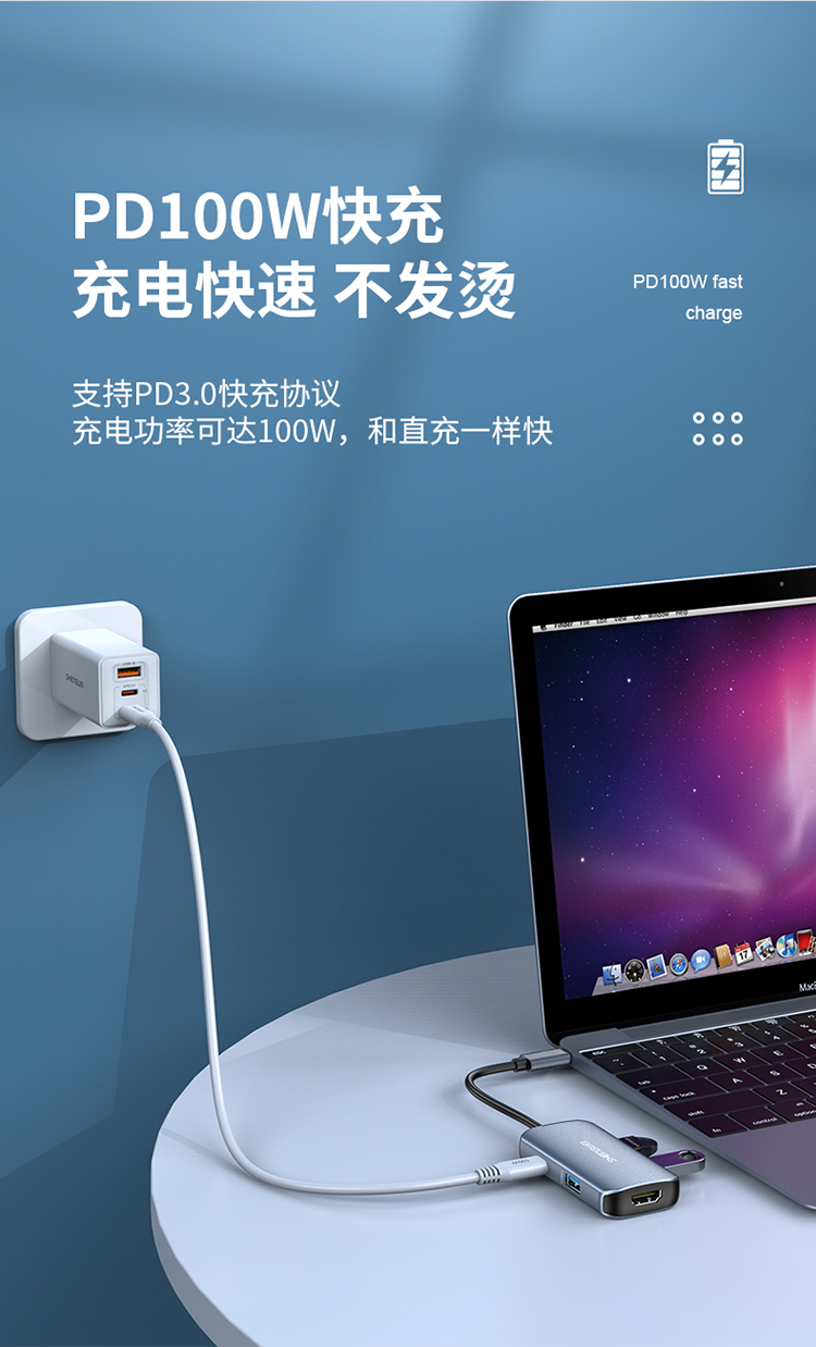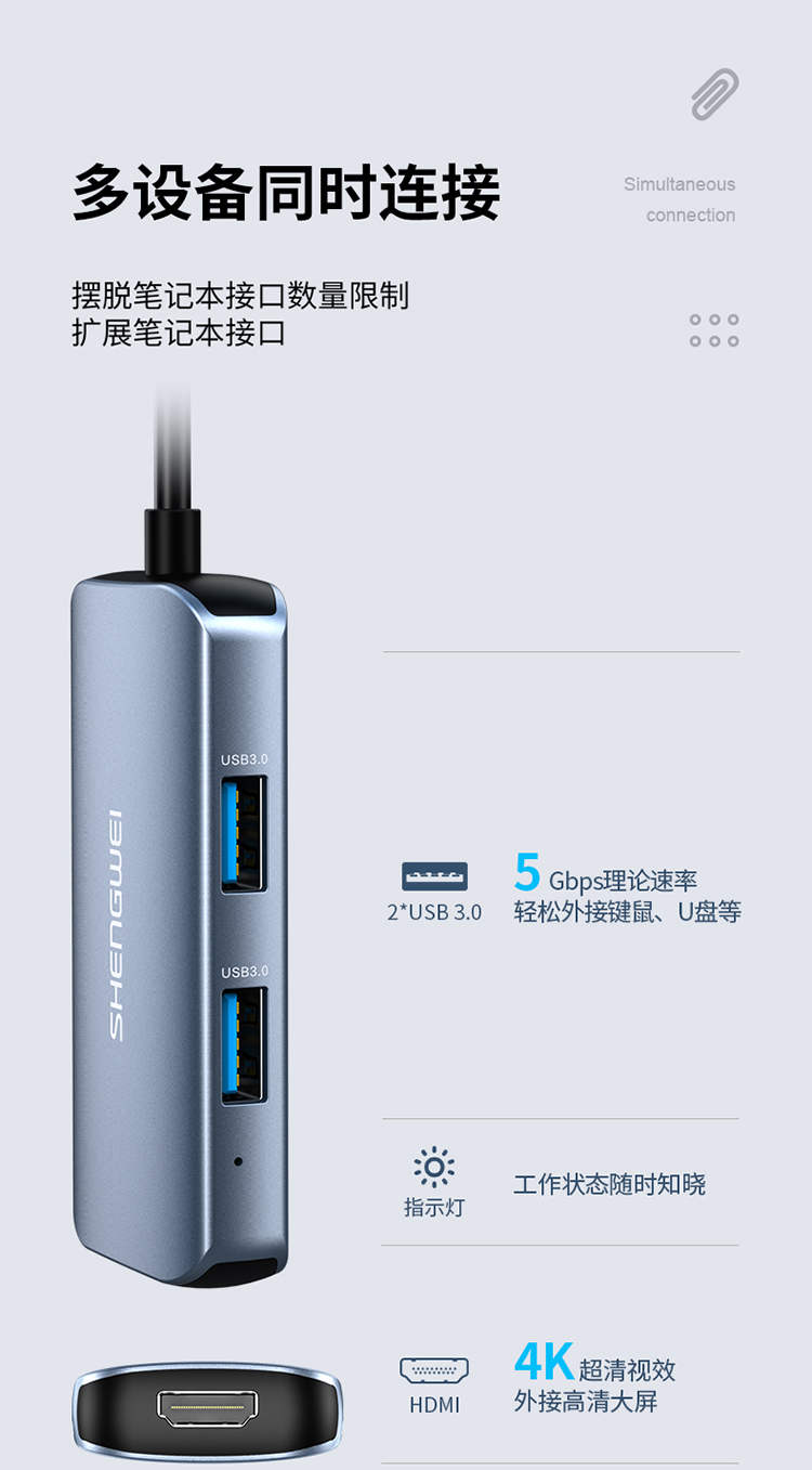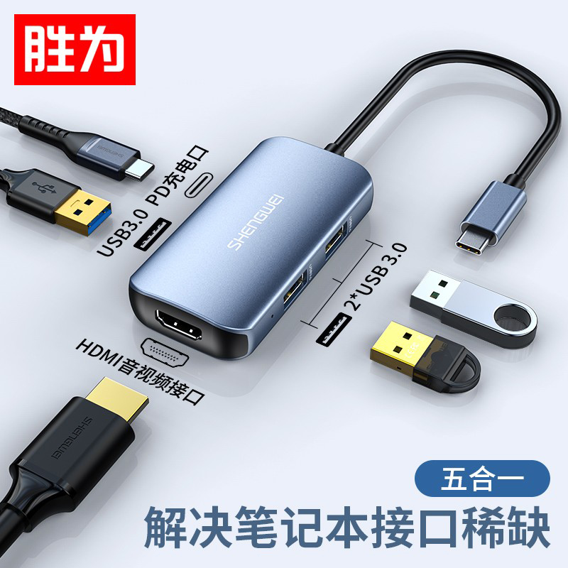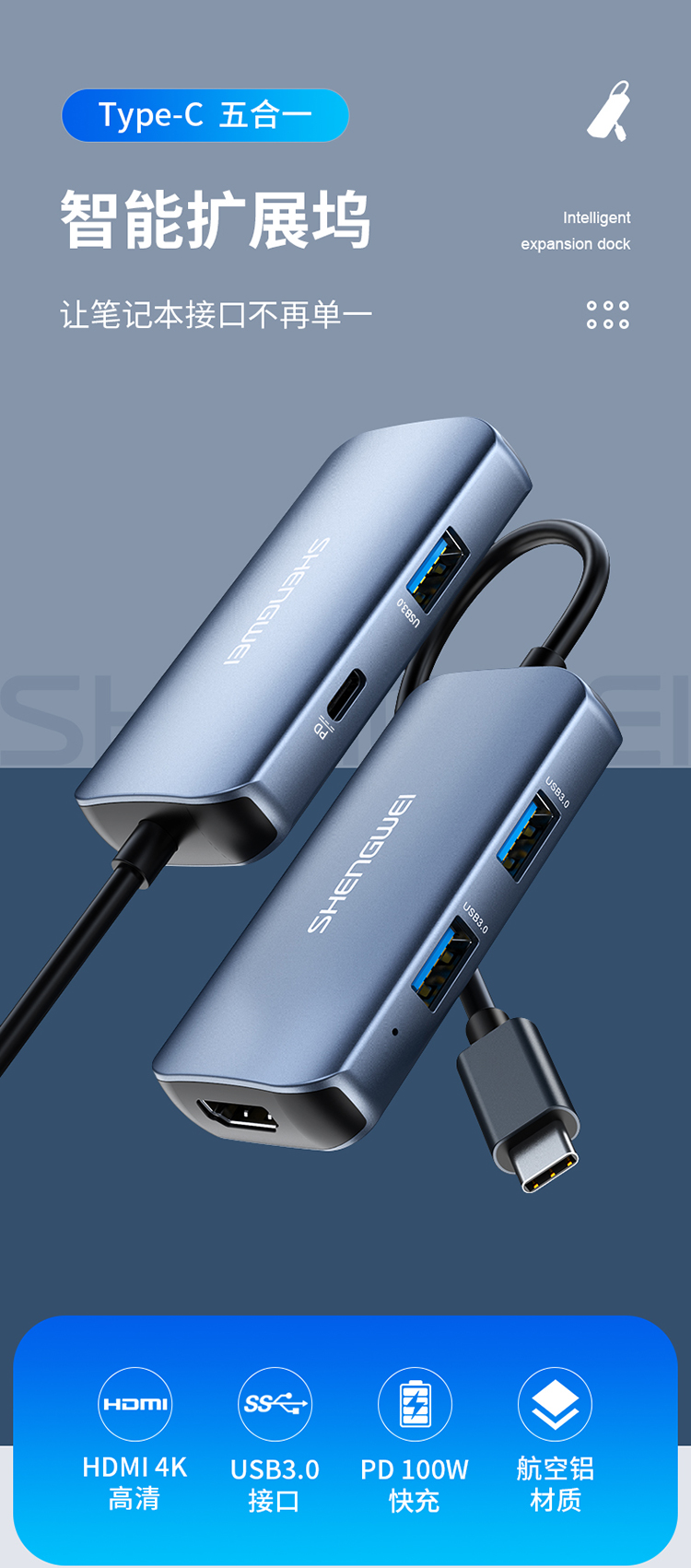 Type-c擴展塢五合一 USB-C轉(zhuǎn)HDMI轉(zhuǎn)換器 適用于華為蘋果電腦macbook筆記本 ZHB5002J