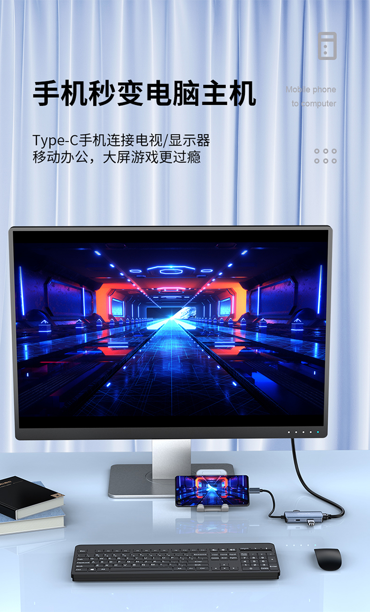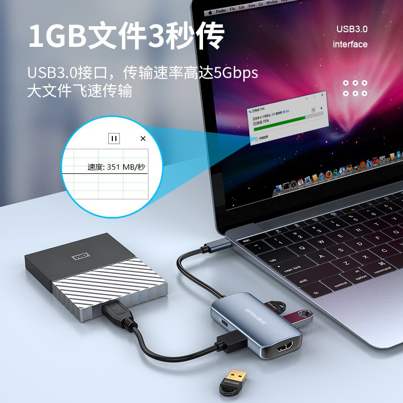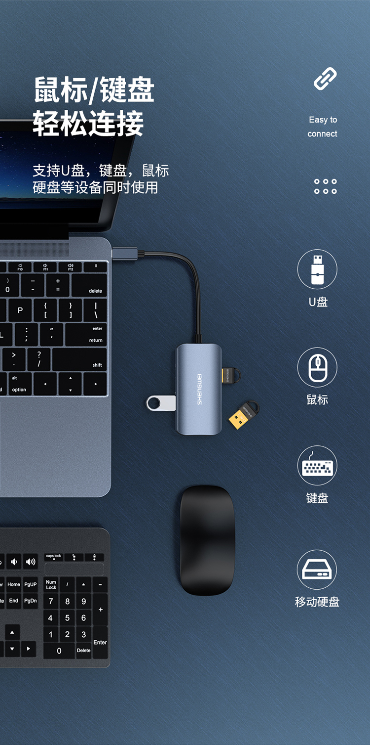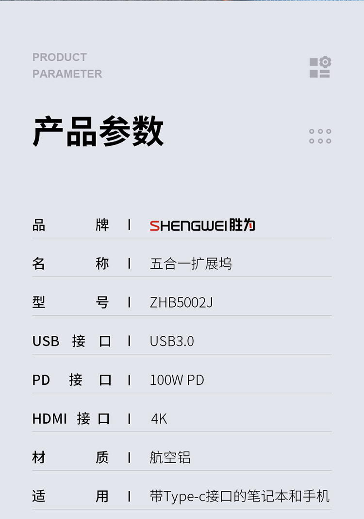 Type-c擴展塢五合一 USB-C轉(zhuǎn)HDMI轉(zhuǎn)換器 適用于華為蘋果電腦macbook筆記本 ZHB5002J