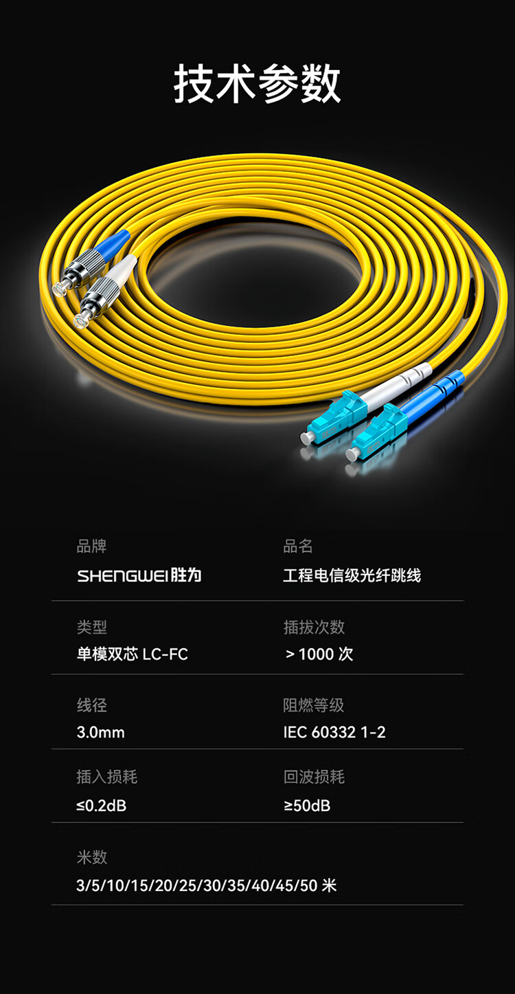 LC-FC單模雙芯光纖跳線 勝為 FSC-110