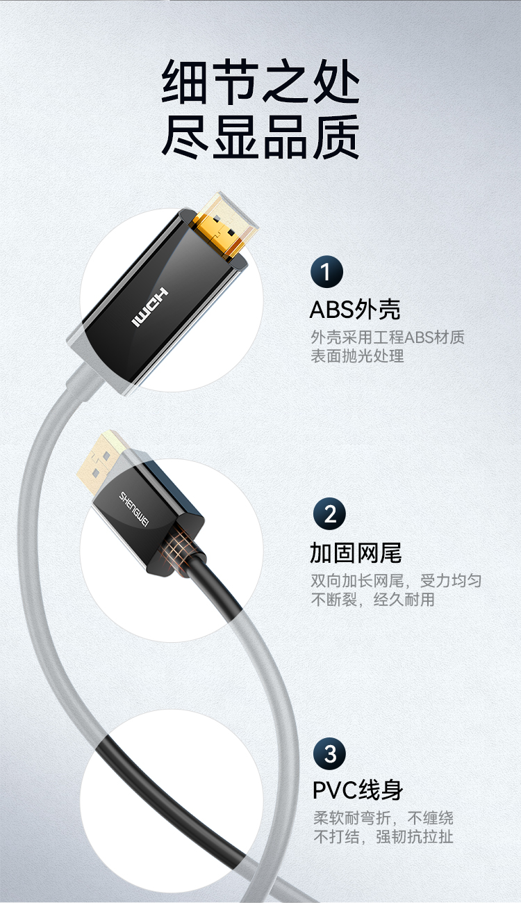 DP轉(zhuǎn)HDMI轉(zhuǎn)接線 4K高清連接線1.2版 DisplayPort轉(zhuǎn)HDMI視頻線 電腦接電視顯示器轉(zhuǎn)換器線 1.8米 勝為 ADH0018G