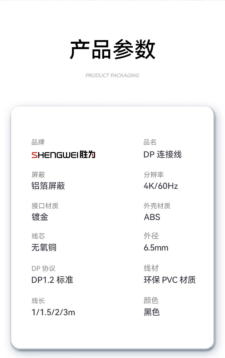 DP線1.2版 4K高清公對公2K/144Hz連接線 勝為 臺式機(jī)電腦顯卡筆記本連接顯示器視頻線1.5米 ADD0015G