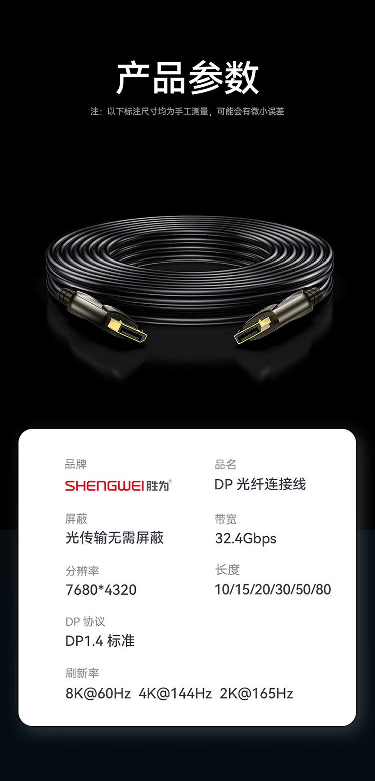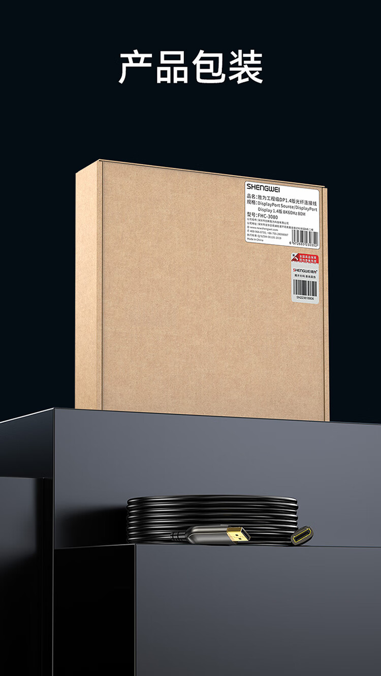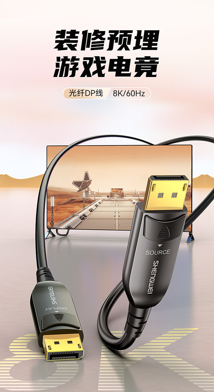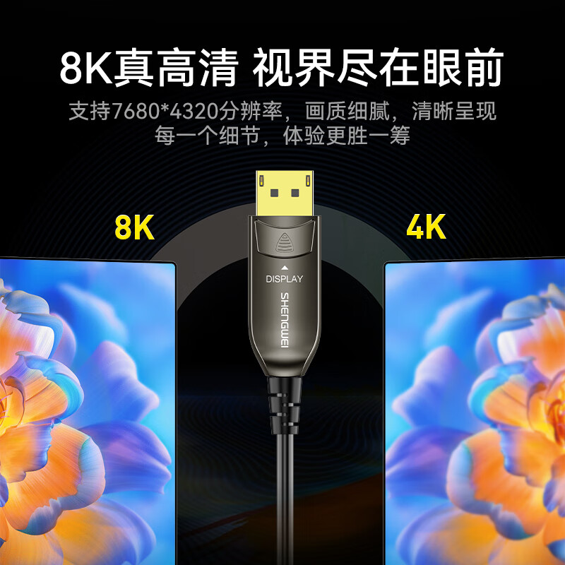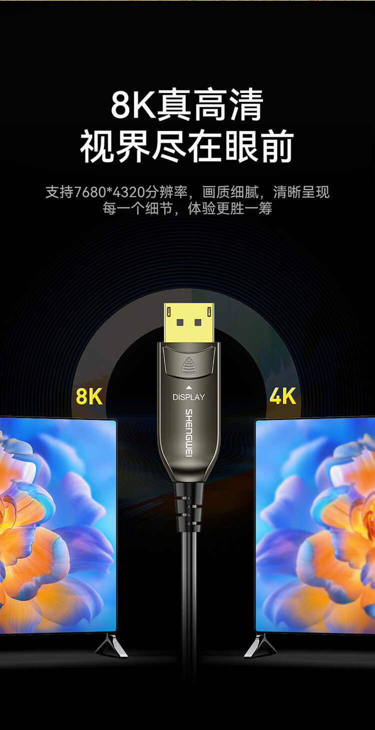 光纖DP線1.4版 8K高清線發(fā)燒工程級(jí) 勝為 電腦電視投影儀家庭影院3D視頻連接線 10米 FHC-3010