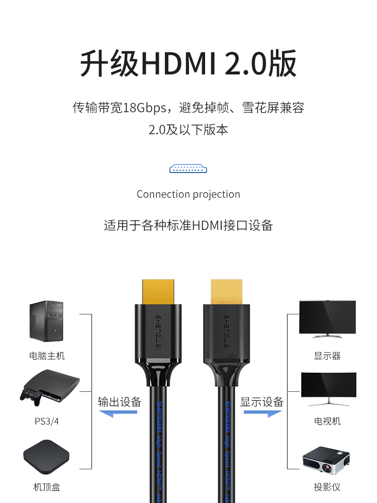 規(guī)格:標(biāo)準(zhǔn)19芯;HDMI2.0