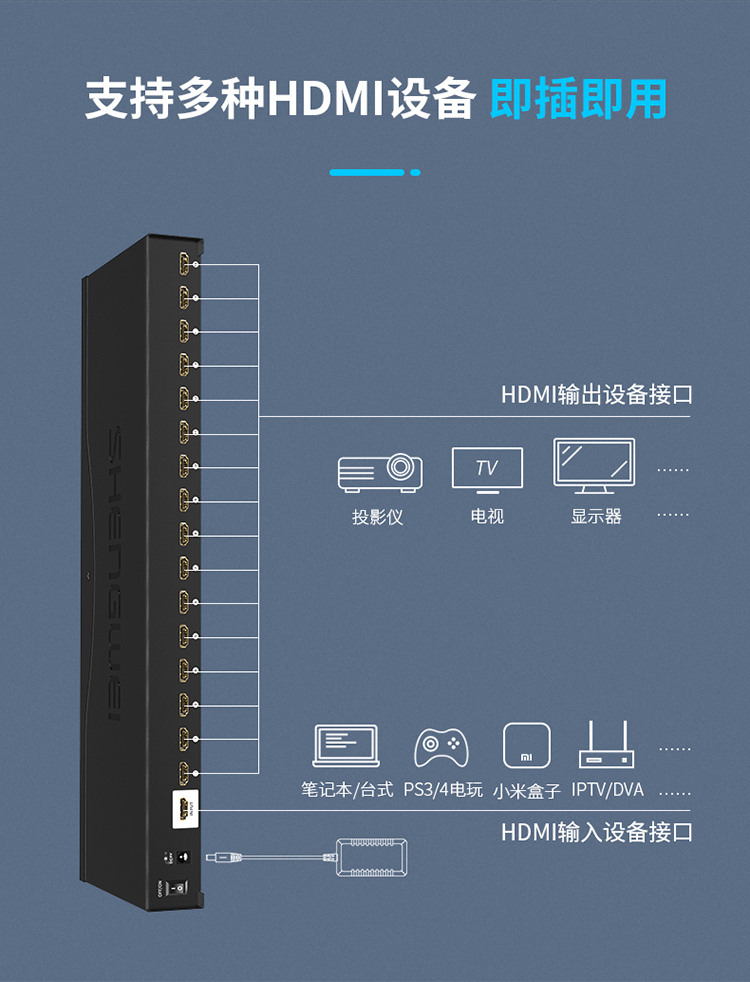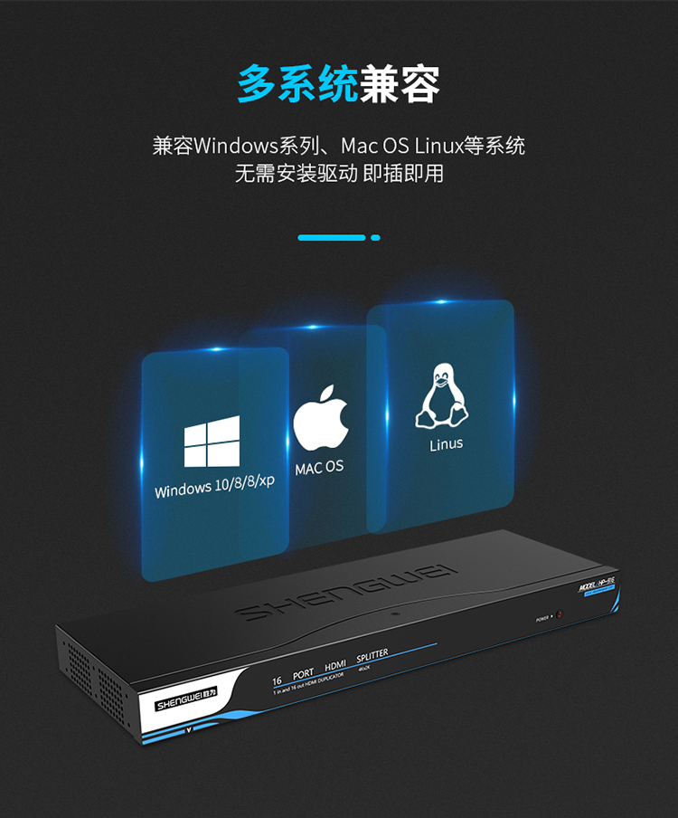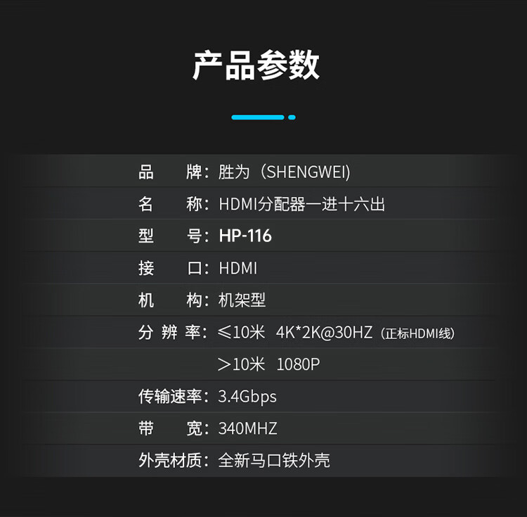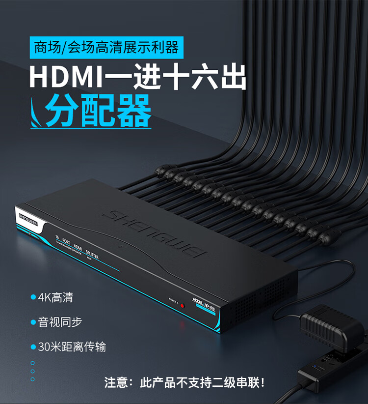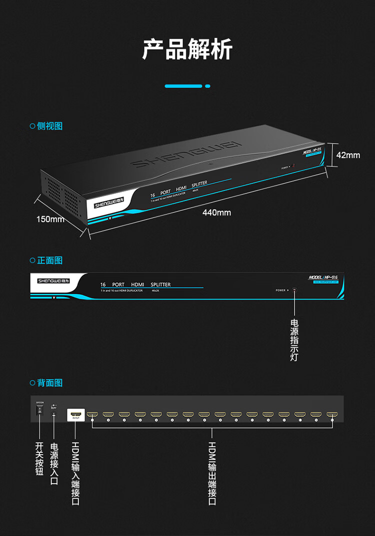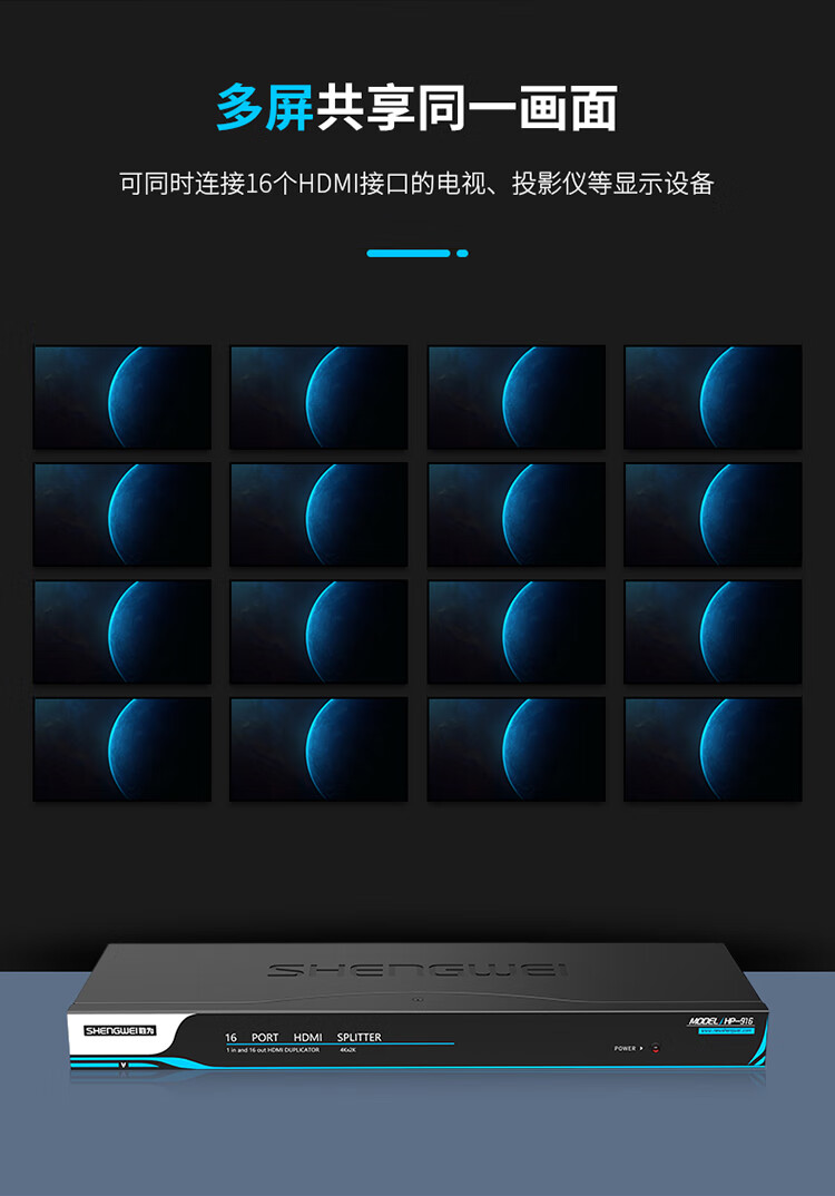 HDMI分配器1進(jìn)16出 4k高清視頻分屏器一分十六 勝為 HP-116
