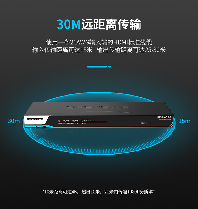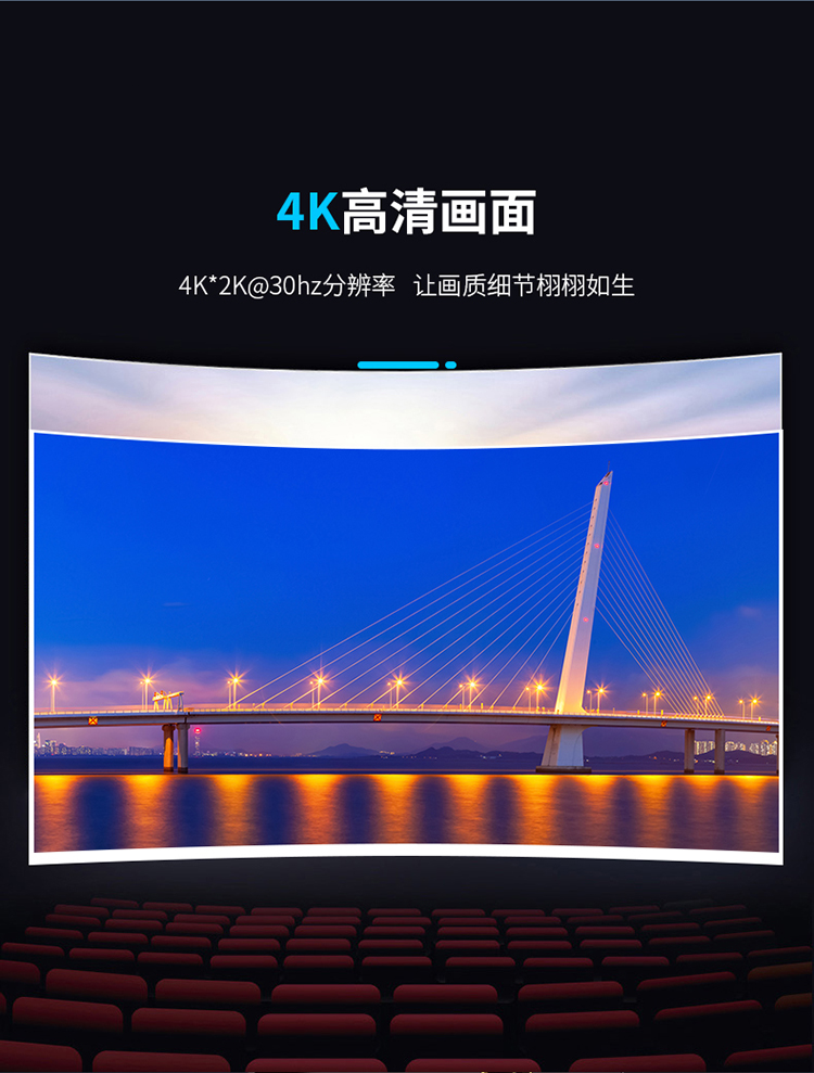分辨率:4K*2K/30HZ(≤10米);1080P(>10米)