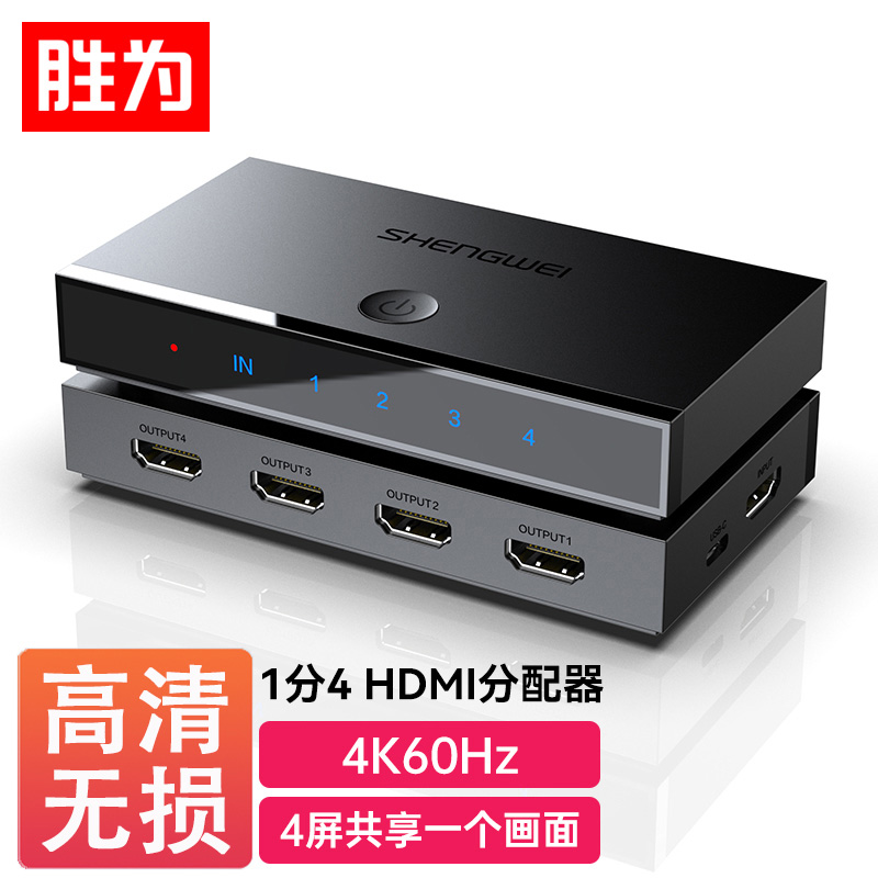 HDMI2.0分配器一進(jìn)四出 4K/60Hz高清視頻分屏器?勝為一分四 DHD2104G