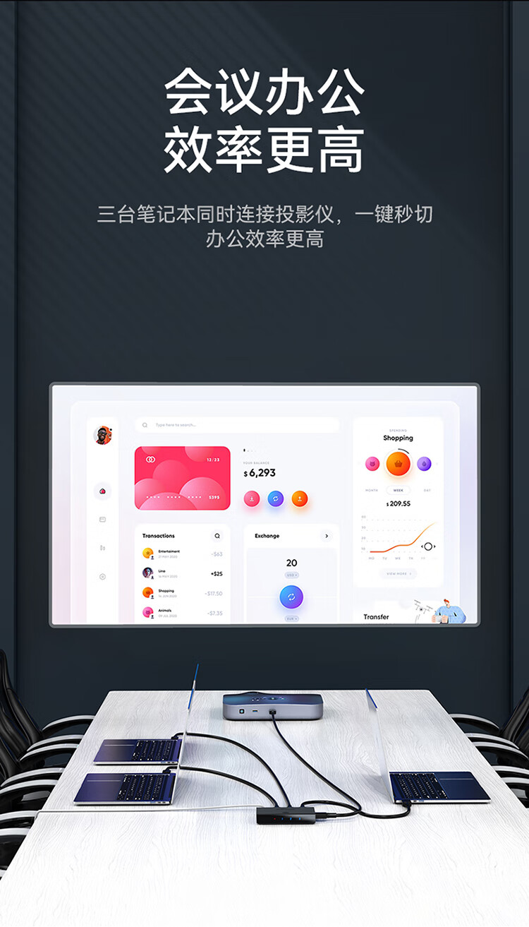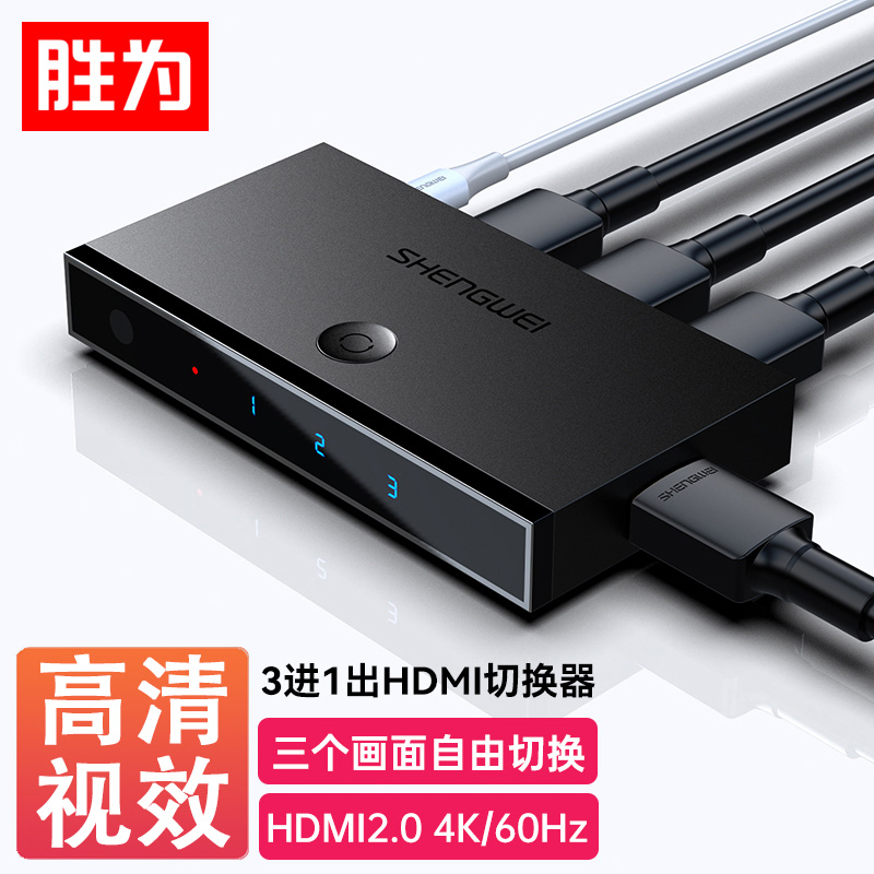 HDMI切換器2.0版3進(jìn)1出 三進(jìn)一出4K/60Hz高清視頻切屏器 筆記本電腦智能盒子接電視投影儀 DHD2301G