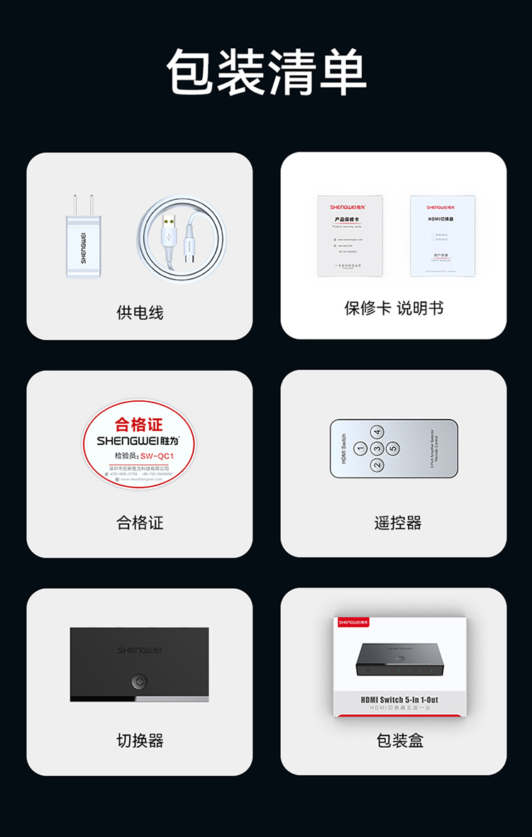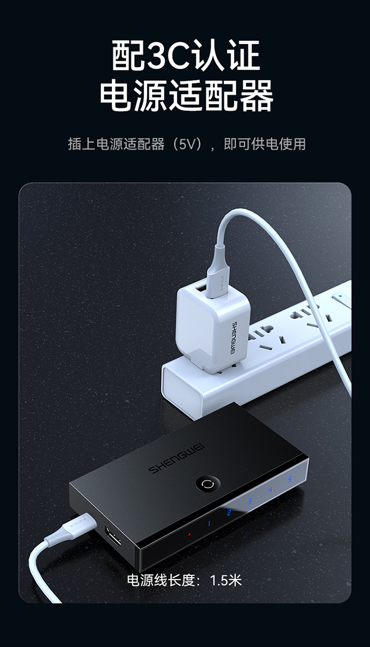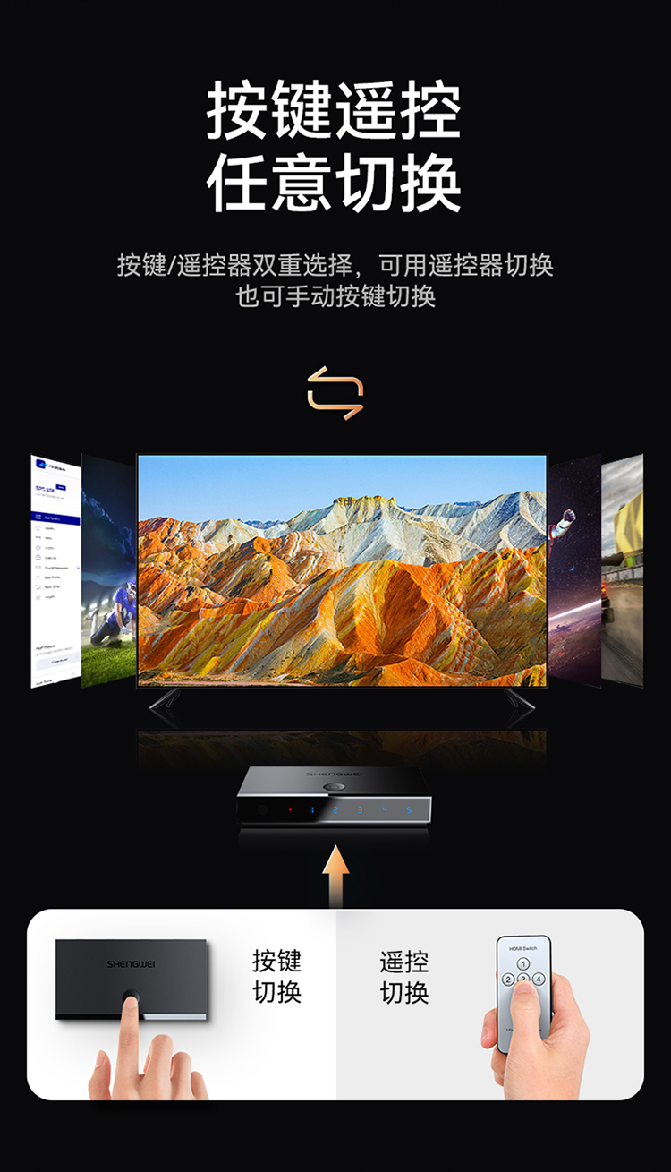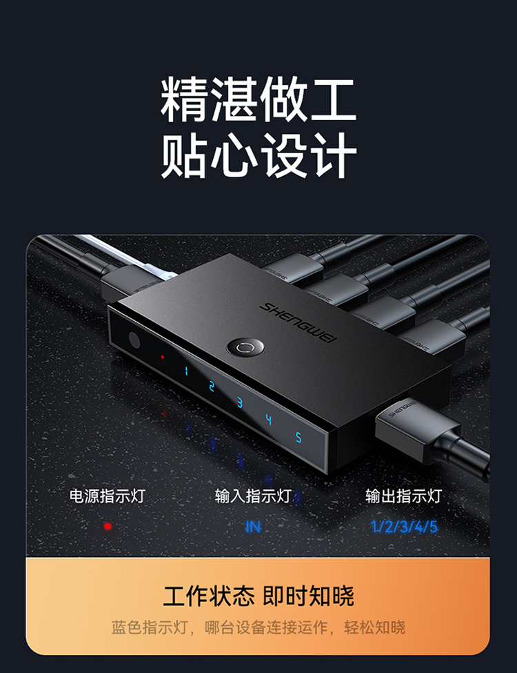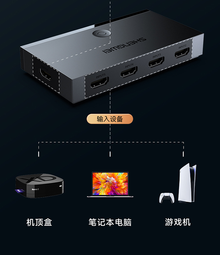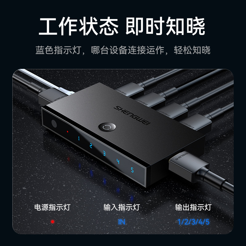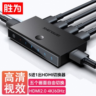 HDMI2.0切換器5進(jìn)1出 五進(jìn)一出4K/60Hz高清視頻切屏器 筆記本接電視投影儀 勝為DHD2501G