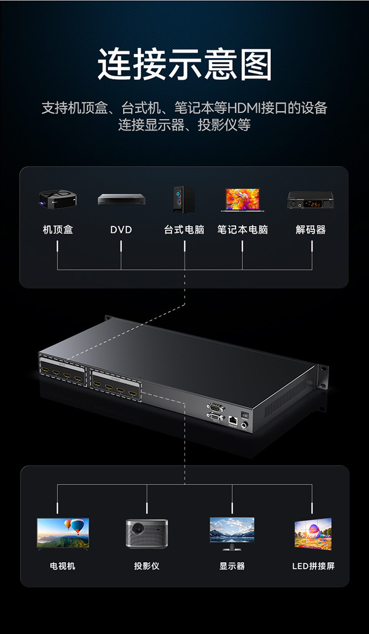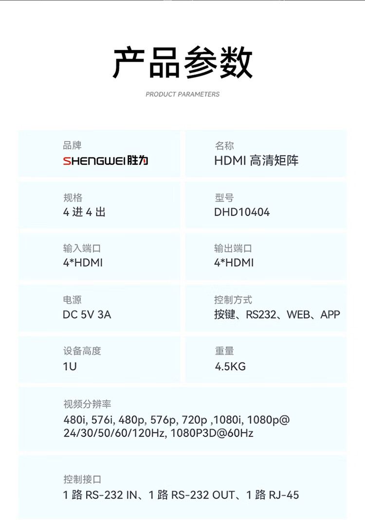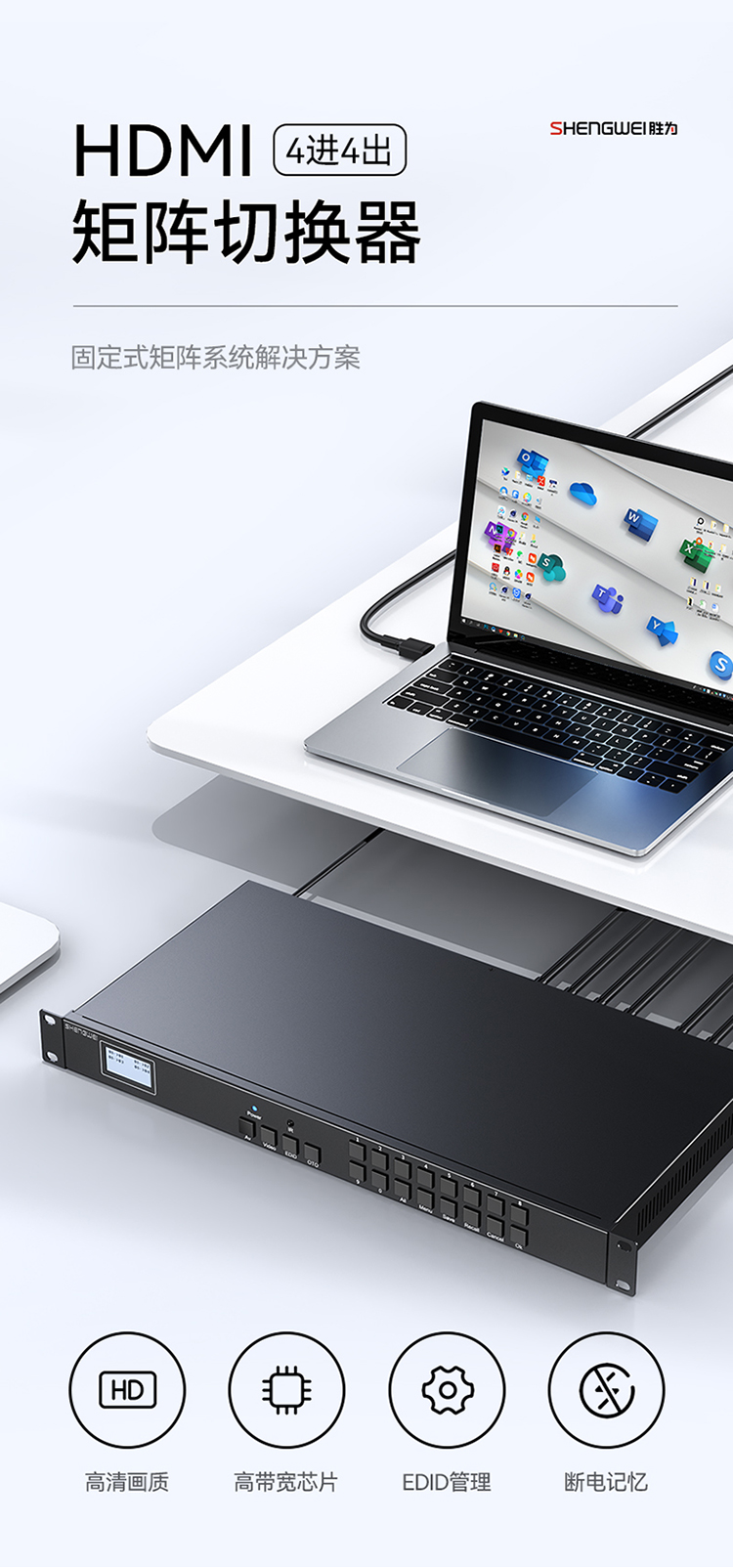 HDMI矩陣切換器4進4出 1080P音視頻矩陣切換器 拼接屏控制器 機架式 勝為 DHD10404