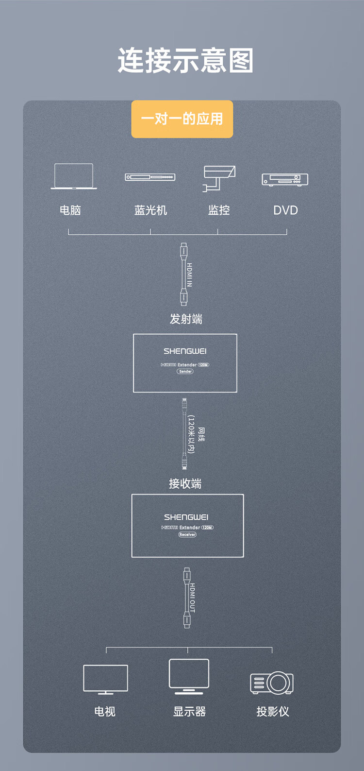 HDMI網(wǎng)絡(luò)延長器發(fā)射器 RJ45網(wǎng)線傳輸高清HDMI 120米單網(wǎng)線傳輸信號發(fā)射器 勝為DH2120A