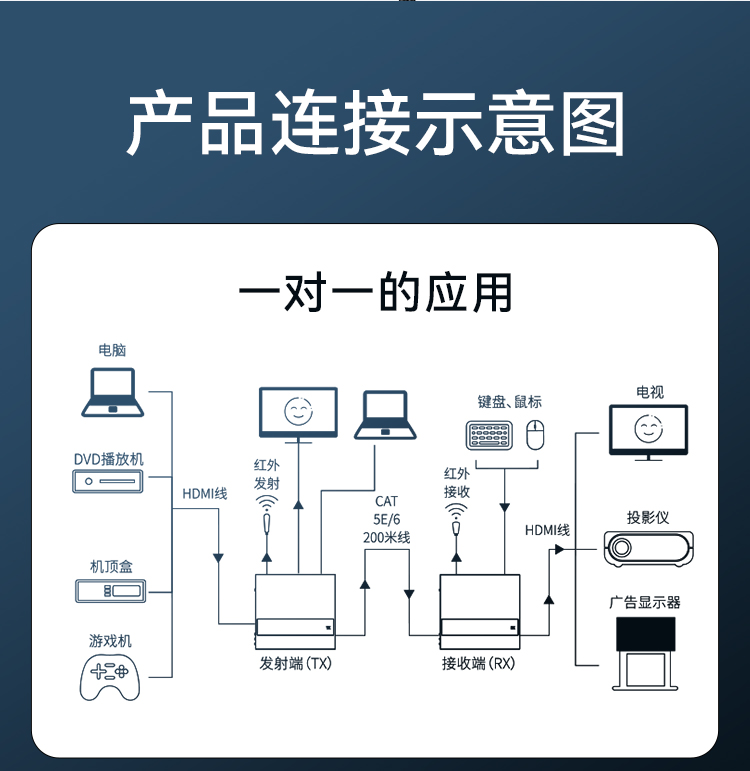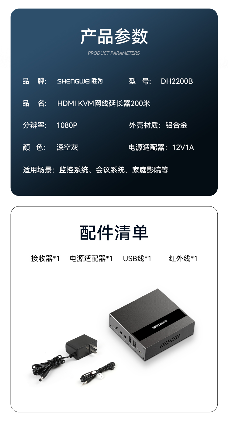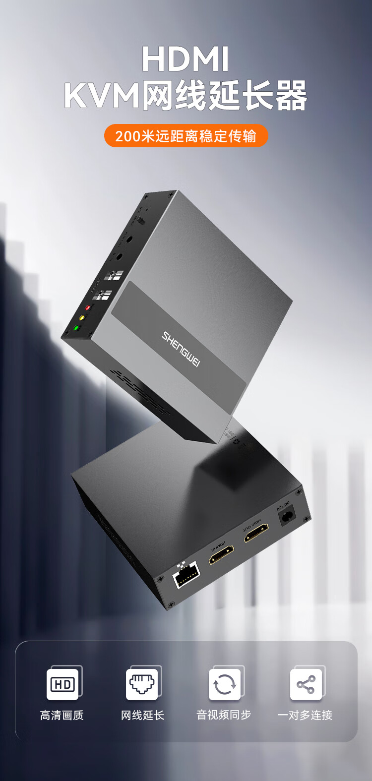 HDMI延長器200米 HDMI轉(zhuǎn)RJ45網(wǎng)口轉(zhuǎn)換器 KVM鍵鼠遠(yuǎn)程控制信號放大器 勝為 DH2200B