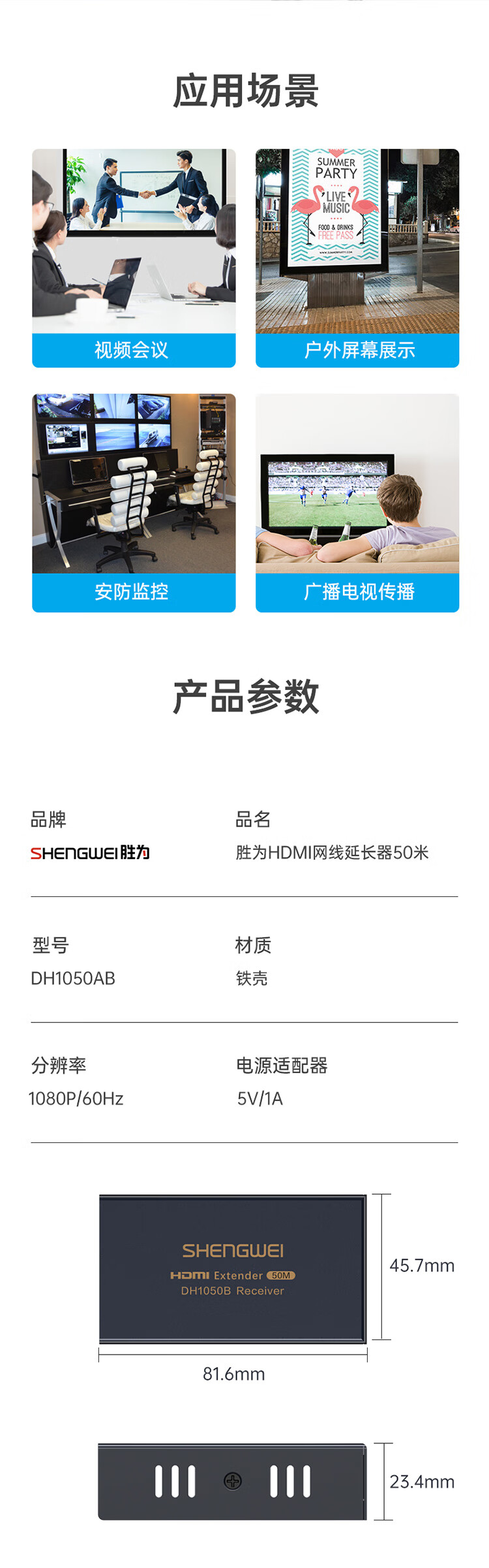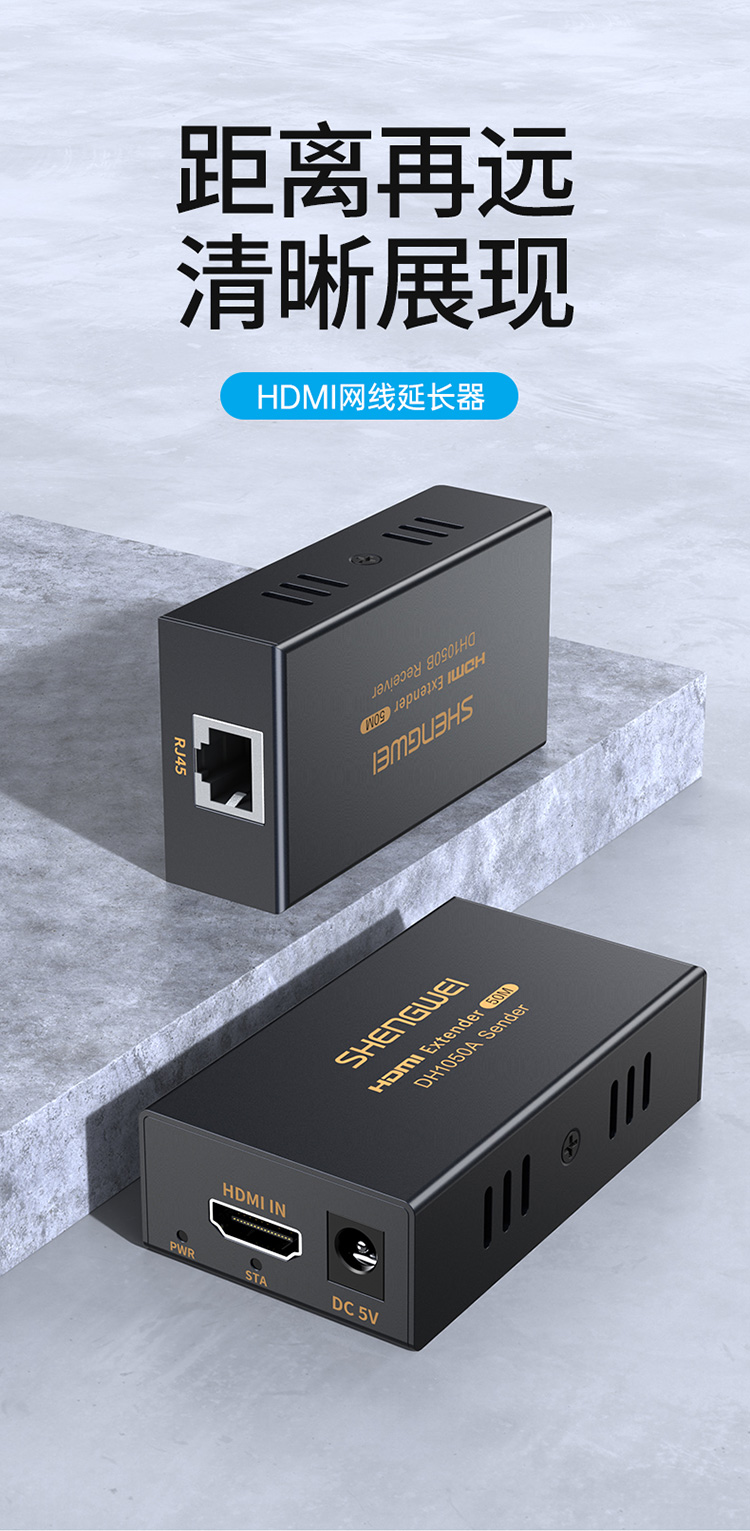 HDMI延長器50米 HDMI轉(zhuǎn)RJ45網(wǎng)口轉(zhuǎn)換器 單網(wǎng)線網(wǎng)絡(luò)高清傳輸信號放大器 一對 勝為 DH1050AB
